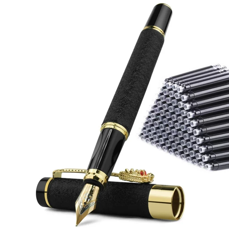 Penne a inchiostro da 50 pezzi/set e 1 penna stilografica in metallo per lavoro quotidiano, scrittura, vacanze, cancelleria scolastica, ufficio