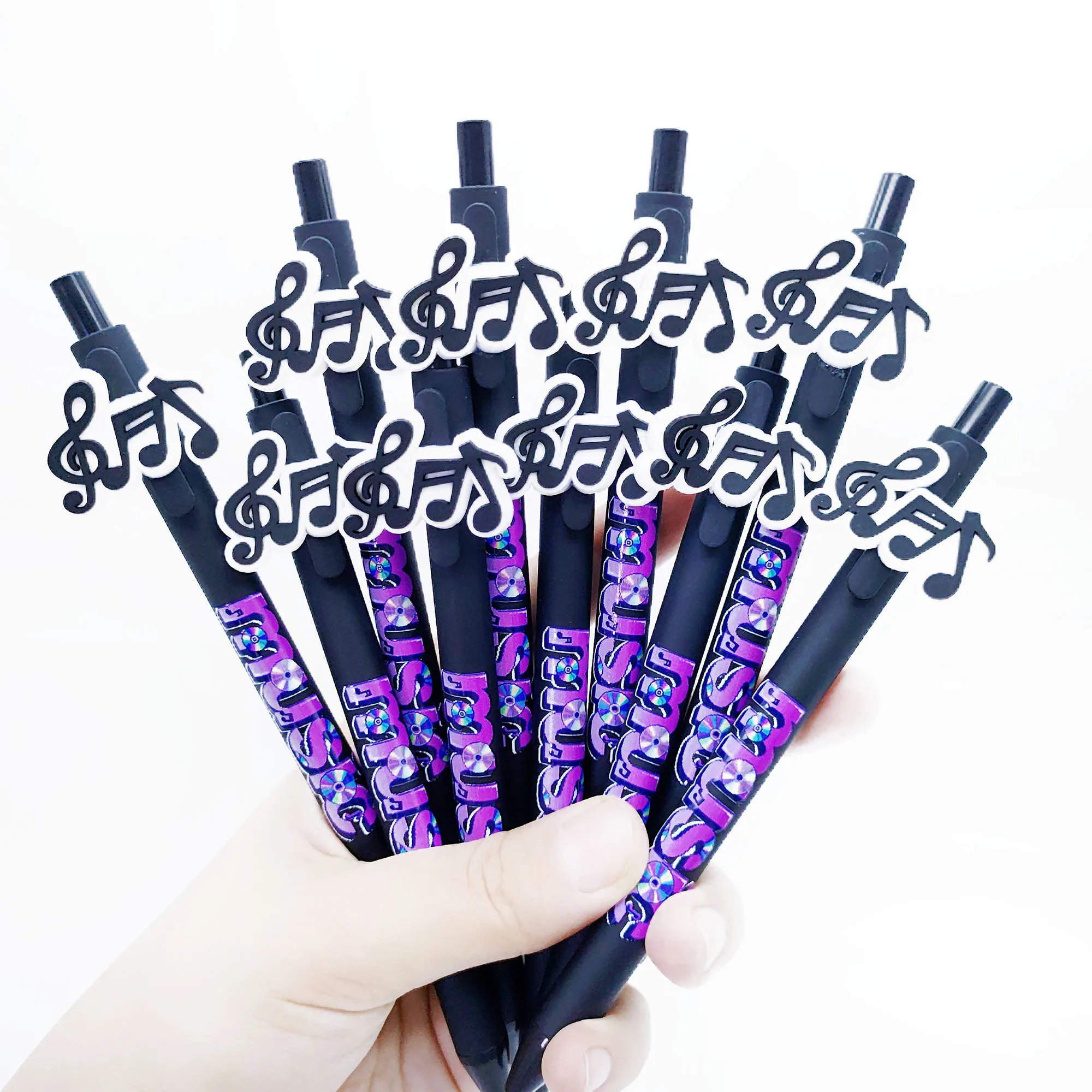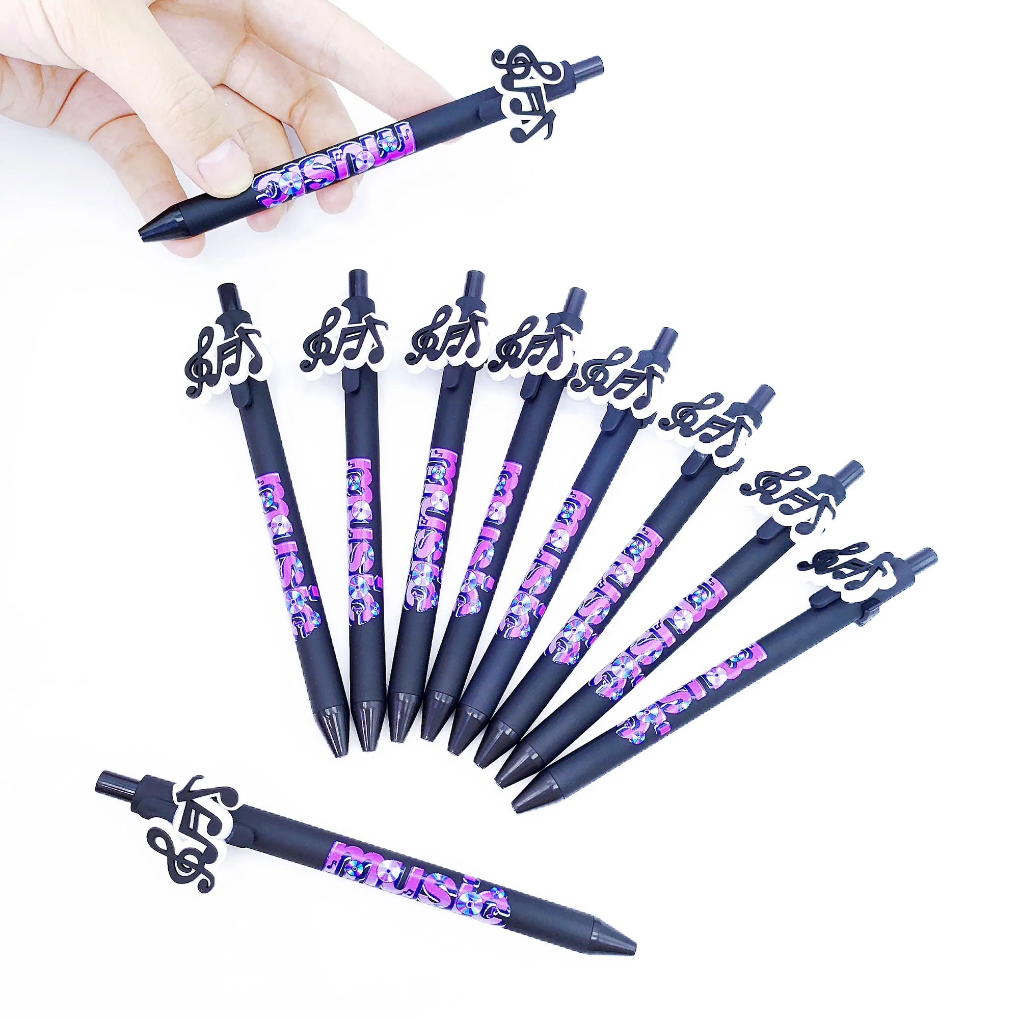 Penne a sfera a tema musicale da 10/15 pezzi per cancelleria per l’apprendimento degli studenti adatte per riunioni di ufficio, scrittura e penne per pressare.