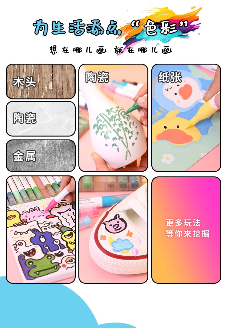 Hladdal 120/64/56/8 colori pennello pennarelli acrilici set, scrittura manuale, disegno doppio graffiti, penne per pittura acrilica artistica per studenti