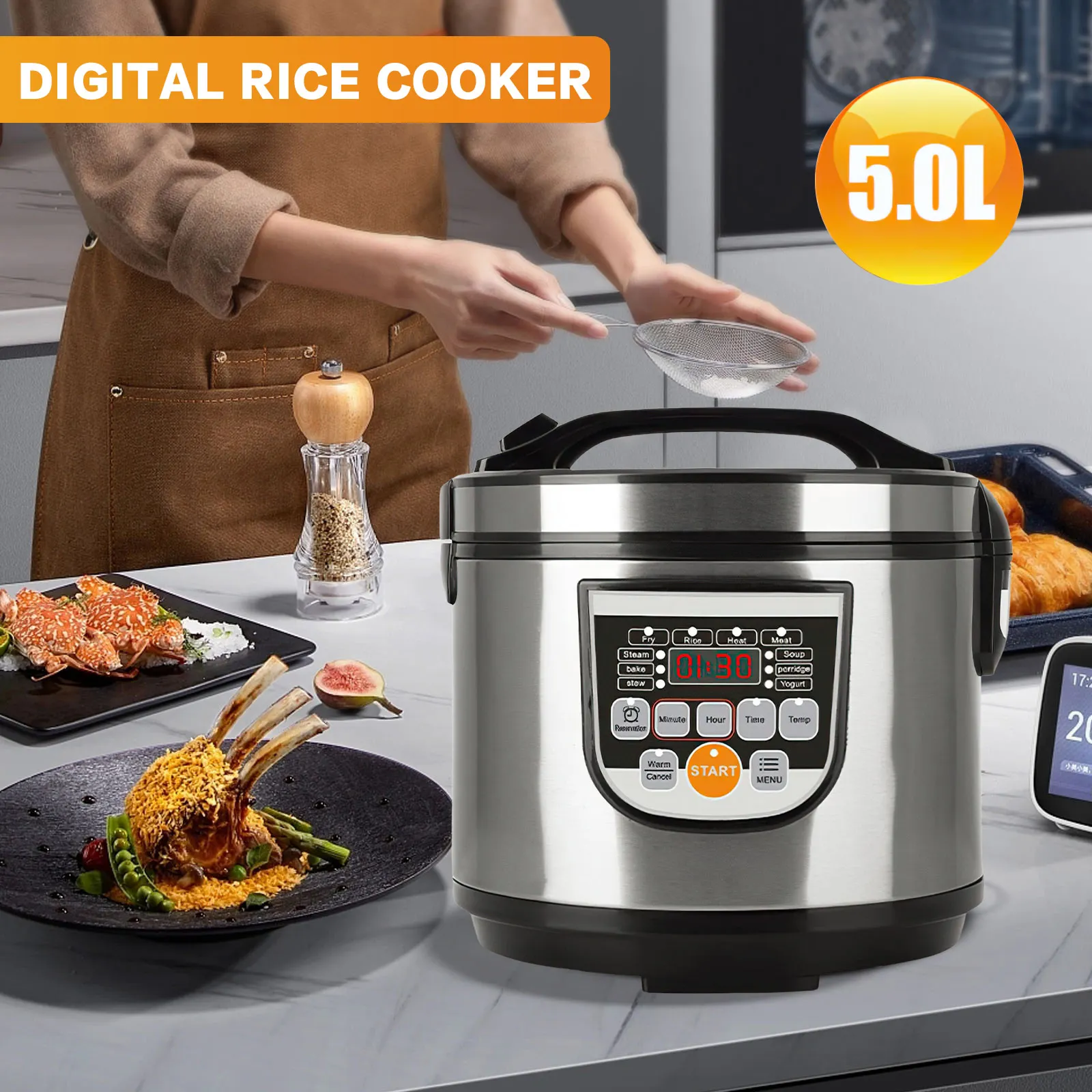 Pentola a pressione elettrica da 5 litri Multicooker intelligente in acciaio inossidabile per cucina Pentola a cottura lenta Fornello di riso Pentola a vapore Scaldavivande 220V