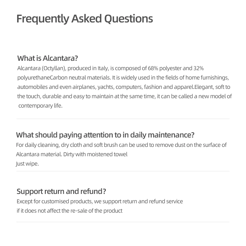 1.Realizzato in un materiale che unisce le alte prestazioni del supercar: Realizzato in Alcantara.Stampato con distintivi di cucitura blu e rossa.