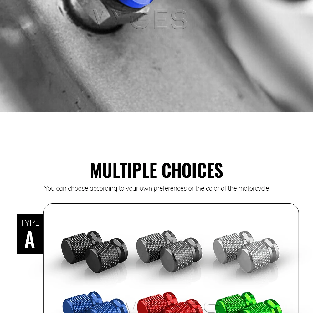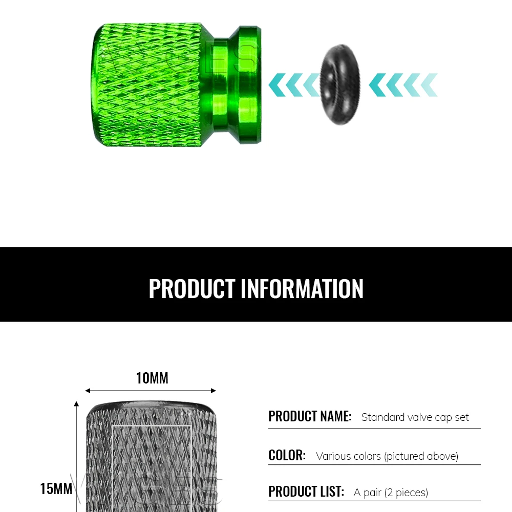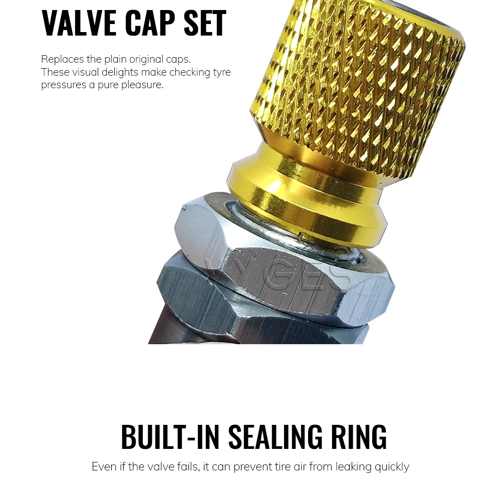 Realizzato in alluminio con molte attenzione ai dettagli.Fornito in set di due.Solo adatto per valvole in gomma.