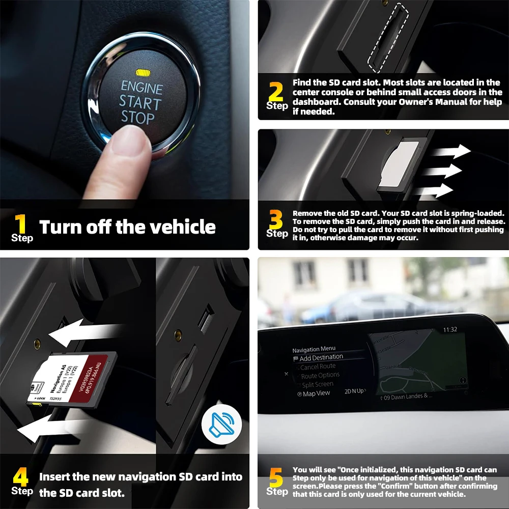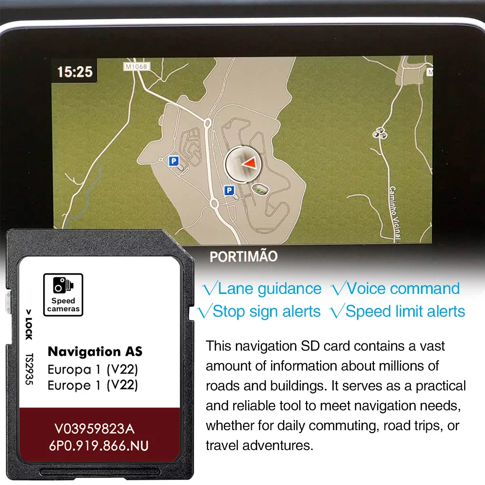 Albania*, Andorra, Austria, Bielorussia*, Belgio, Bosnia ed Erzegovina*, Bulgaria, Croazia, Cipro*, Repubblica Ceca, Danimarca, Estonia* Finlandia, Francia, Germania, Gibraltar, Grecia, Ungheria, Irlanda, Isola, Italia, Kosovo * Lettonia, Liechtenstein, Lituania, Lussemburgo, Malta, Macedonia (pre-Repubblica di Yugoslavia), Moldavia*, Monaco, Montenegro*, Paesi Bassi, Norvegia, Polonia, Portogallo *nelle parti 1.La scheda SD funzionerà SOLO con il sistema di navigazione del sedile "Navi System – 6P0xxx". Come identificare la tua versione NAVI: (1).Premere il pulsante NAV. (2).Conferma la configurazione > Selezione delle informazioni sulla versione sul display. (3).Controlla la prima linea di testo nelle "Informazioni sulla versione". (4).Se le prime tre cifre sono 6P0, la versione del tuo sistema è "Navi System – 6P0xxx. 2.La scheda SD funzionerà anche con il sistema di navigazione Seat Standard MIB2 Come identificare la versione della tua navigazione: (1).Premere il pulsante NAV. (2).Conferma la configurazione > Selezione delle informazioni sulla versione sul display. (3).Controlla la prima riga di testo nelle "Informazioni sulla versione". (4). Il codice articolo del dispositivo deve essere: 5QA0358xxx. Codice articolo: V03 959 823 A / 6P0.919.866.NU Questo aggiornamento sostituisce il seguente elenco delle edizioni precedenti: Versione 2025 Riferimento V03 959 823 A / 6P0.919.866.NU Versione 2025 Riferimento V03 959 822 NT / 6P0.919.866.NT Versione 2025 Riferimento V03 959 821 PF / 6P0.919.866.PF Versione 2024 Riferimento V03 959 821 HA / 6P0.919.866.HA Versione 2023 Riferimento V03 959 821 AL / 6P0.919.866.AL