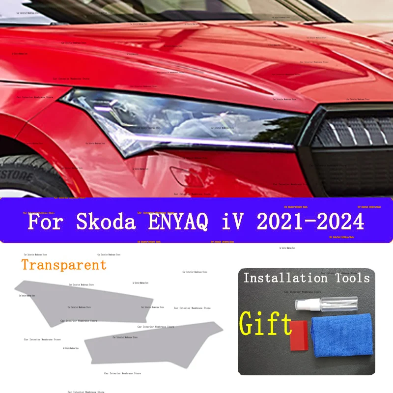 Per Skoda ENYAQ iV 2021-2024 faro esterno per auto lampada anteriore antigraffio tinta TPU pellicola protettiva copertura accessori di riparazione
