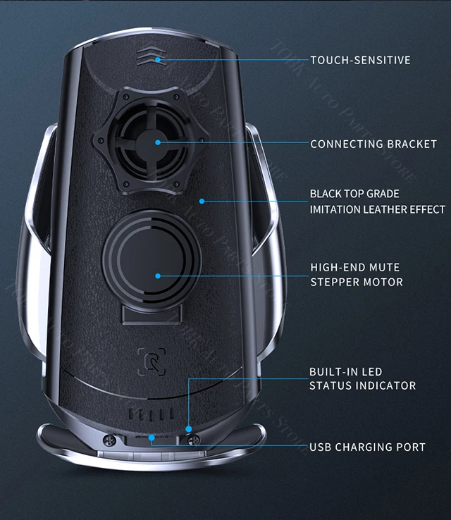 2. [Automatic Clamps & One Hand Operation] This car wireless charger is equipped with automatic sensing technology. Two clips on the mount will automatically close and grip your phone when the phone is attached to the car holder. To release the phone, simply touch the top of the bracket, and the clips will automatically open, allowing you to remove the phone.