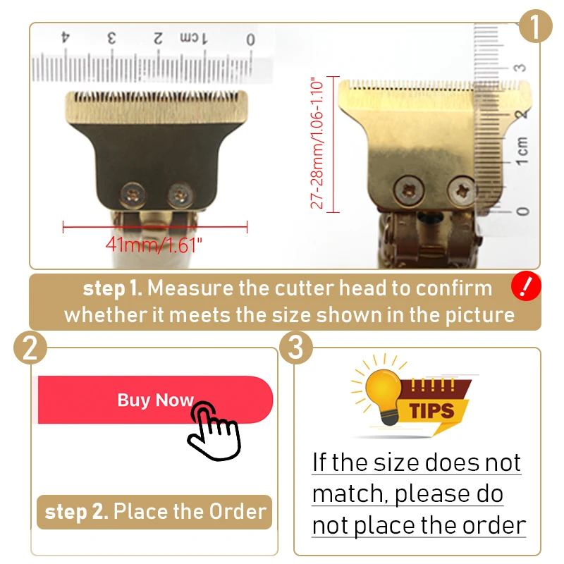 passo 1.Misurare la testa della taglierina per confermare, se incontra la dimensione è mostrato nell’immagine