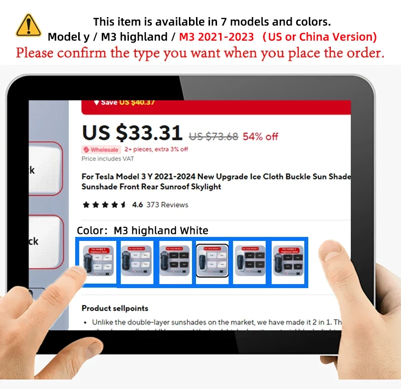 Il telaio del parasole sul tetto in vetro è realizzato in lega di acciaio al manganese, che non è facilmente deformabile.La rete ombreggiante è realizzata a 6 strati di materiale composito.Riduce efficacemente i raggi UV e la radiazione del calore e riduce la temperatura all’interno dell’auto senza cambiare lo stile minimalista dell’auto.