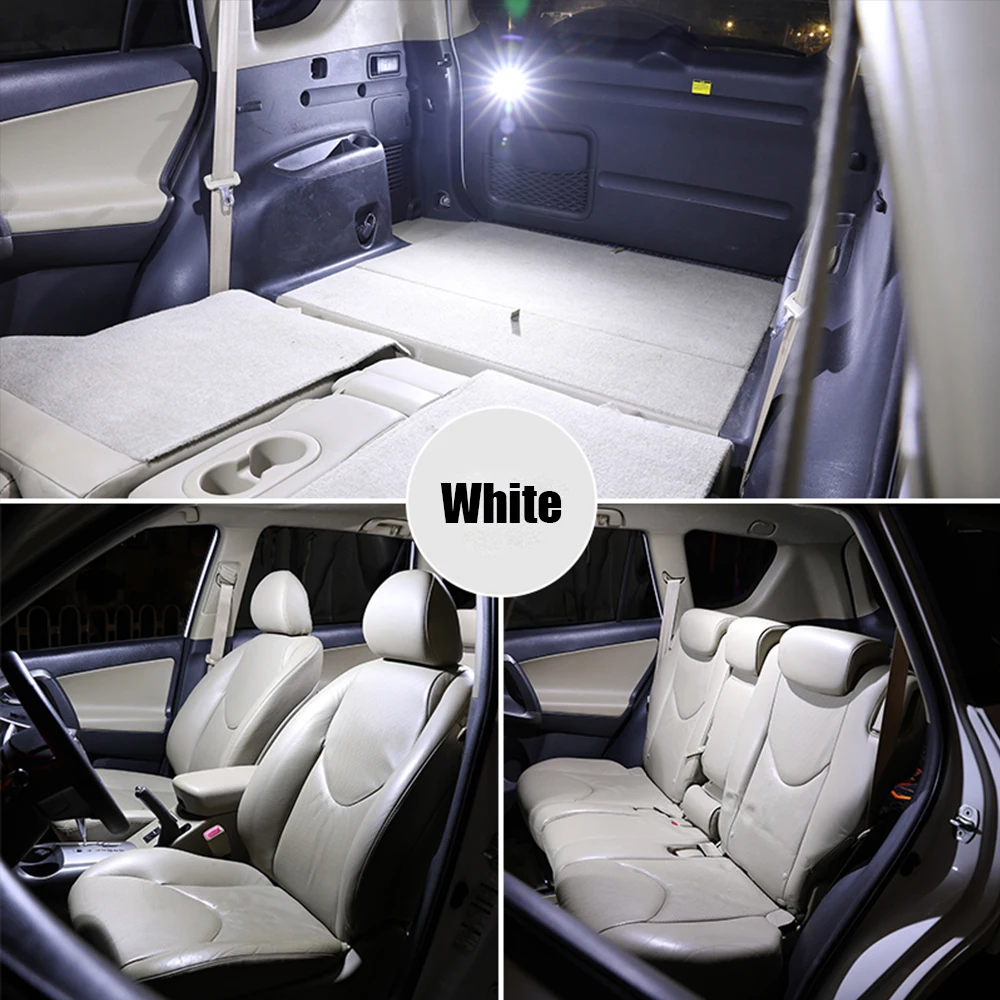 Luce da lettura della prima fila (2 pezzi) Luce da lettura della fila posteriore (3 pezzi) Luce del bagagliaio (1 pezzo) Luce del vano portaoggetti (1 pezzo) Luci per specchietto cosmetico per visiera parasole per auto (2 pezzi) Luci del vano piedi (2 pezzi) Luce di ricambio (1 pezzo)
