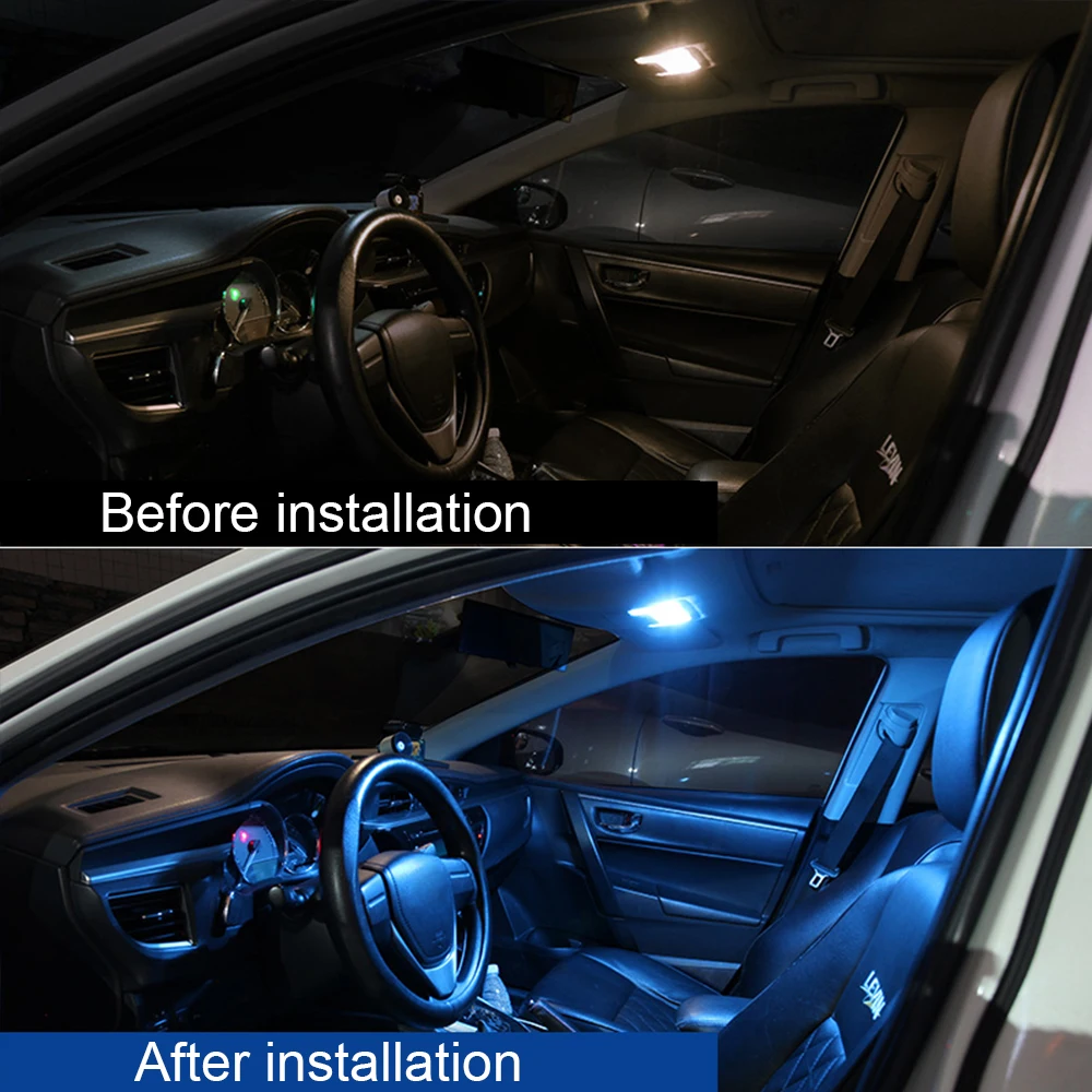 Luce da lettura della prima fila (2 pezzi) Luce da lettura della fila posteriore (3 pezzi) Luce del bagagliaio (1 pezzo) Luce del vano portaoggetti (1 pezzo) Luci per specchietto cosmetico per visiera parasole per auto (2 pezzi) Luci del vano piedi (2 pezzi) Luce di ricambio (1 pezzo)
