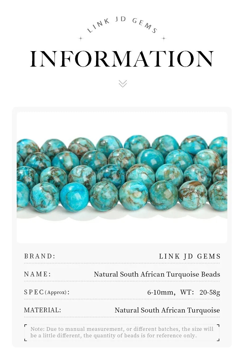 Perline di pietra naturale turchese blu sudafricano distanziatore rotondo allentato per la creazione di gioielli collana braccialetto accessorio fai da te 6 8 10mm 1Perline di pietra naturale turchese blu sudafricano distanziatore rotondo allentato per la creazione di gioielli collana braccialetto accessorio fai da te 6 8 10mm