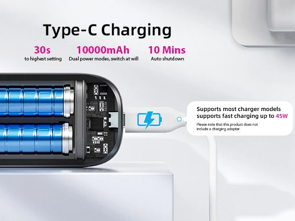 ▲ Autonomia di 120 minuti + Power Bank – Batteria da 10.000 mAh (200% più lunga della maggior parte dei modelli cordless). Ricarica rapida di tipo C. Doppie modalità di alimentazione (con filo/senza fili). Ricarica inversa per dispositivi.