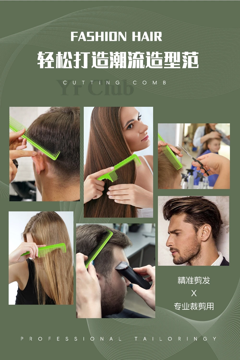 Pettine per capelli verde Pettini per styling professionale Barbiere Parrucchiere Spazzola per capelli Parrucchiere Spazzola per capelli lunghi da donna
