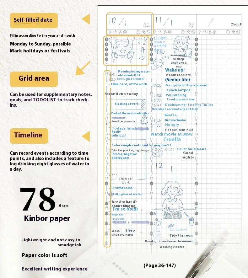 Eu: Spedizione gratuita - Extra EU: € 9,99Taccuino Kinbor Weekly Planner/Timeline All List Notebook