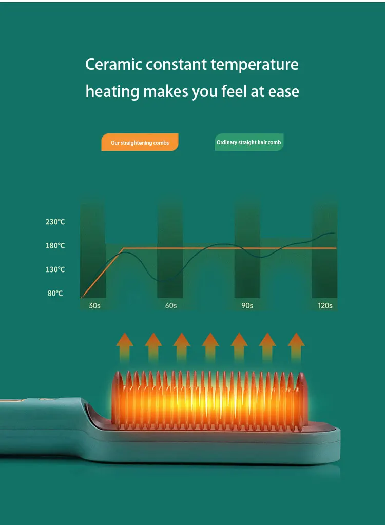 · Denti a pettine con piastra in alluminio riscaldante in più pezzi, temperatura costante e riscaldamento tridimensionale, pettine per capelli lisci