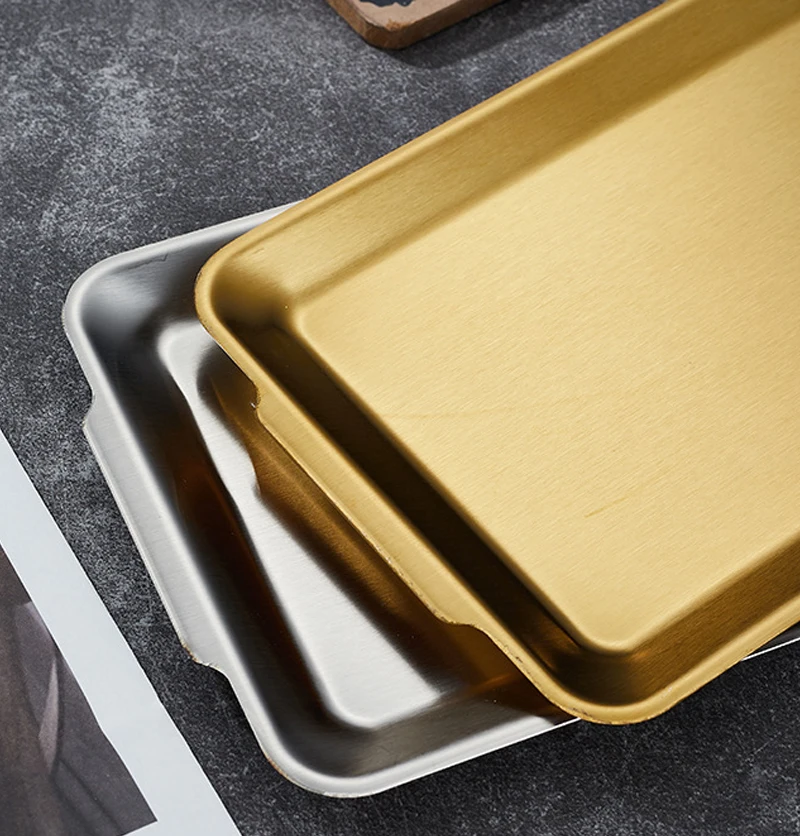 Piatto in acciaio inossidabile 304 Piatto rettangolare Vassoio dorato Decorazione artigianale Bistecca Barbecue Vassoio per snack Accessori da cucina