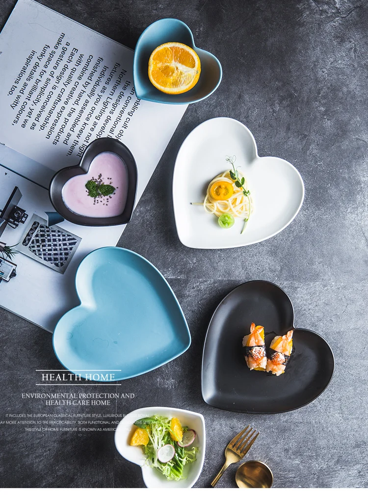 Piatto in ceramica a forma di cuore d’amore opaco europeo posate per la casa torta Dishe piatto in porcellana irregolare piatti da cucina utensili da cucina