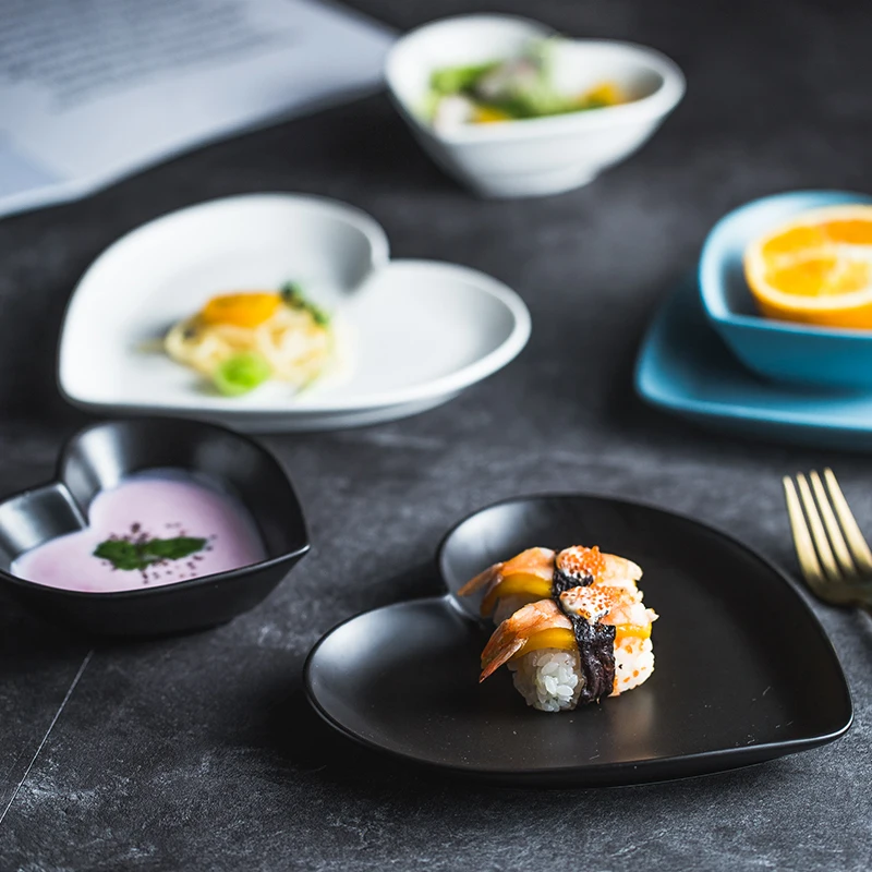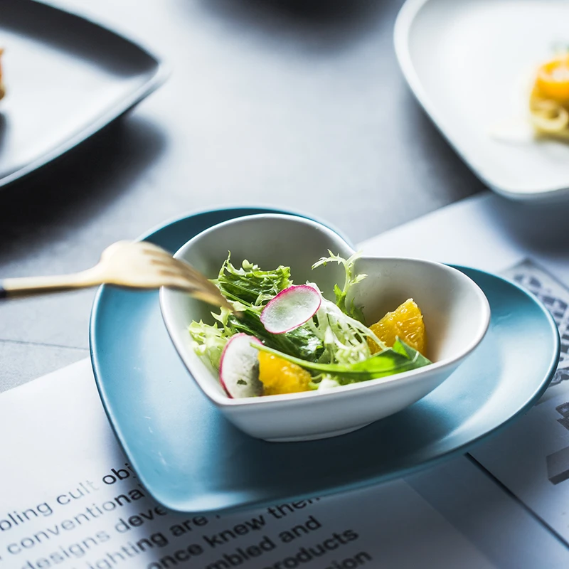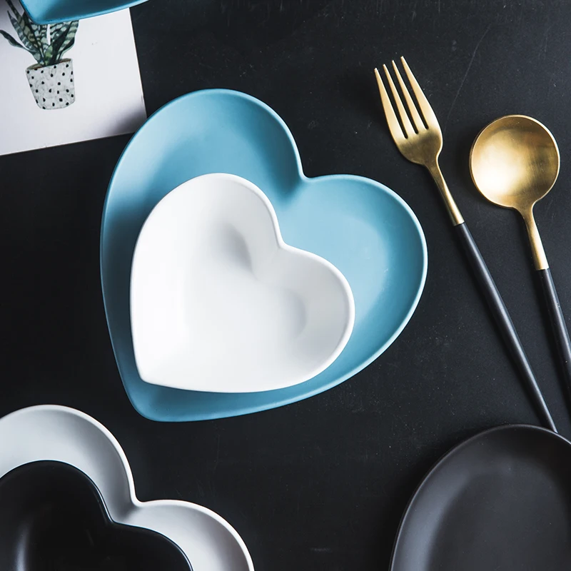 Piatto in ceramica a forma di cuore d’amore opaco europeo posate per la casa torta Dishe piatto in porcellana irregolare piatti da cucina utensili da cucina