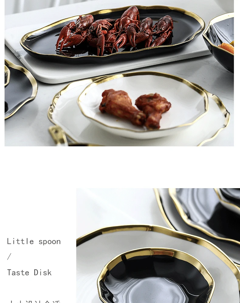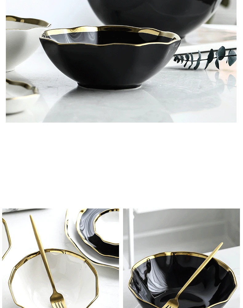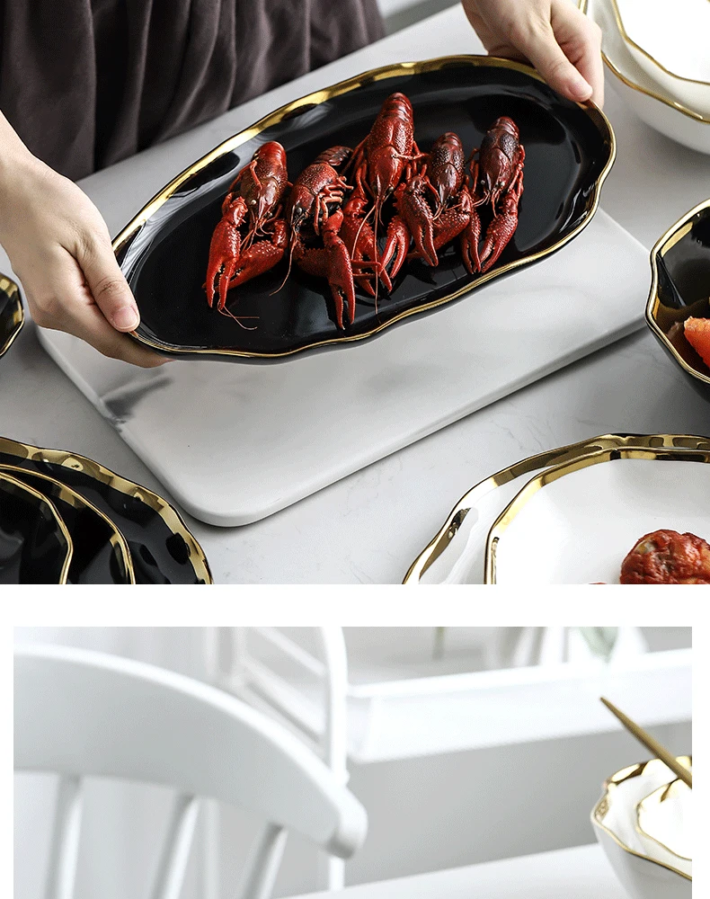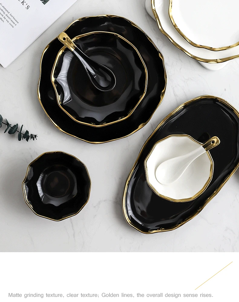 Piatto in ceramica Nordic Golden Stroke leggero di lusso nero bianco pasta bistecca piatti da pranzo piatti da dessert ciotole da zuppa stoviglie per la casa