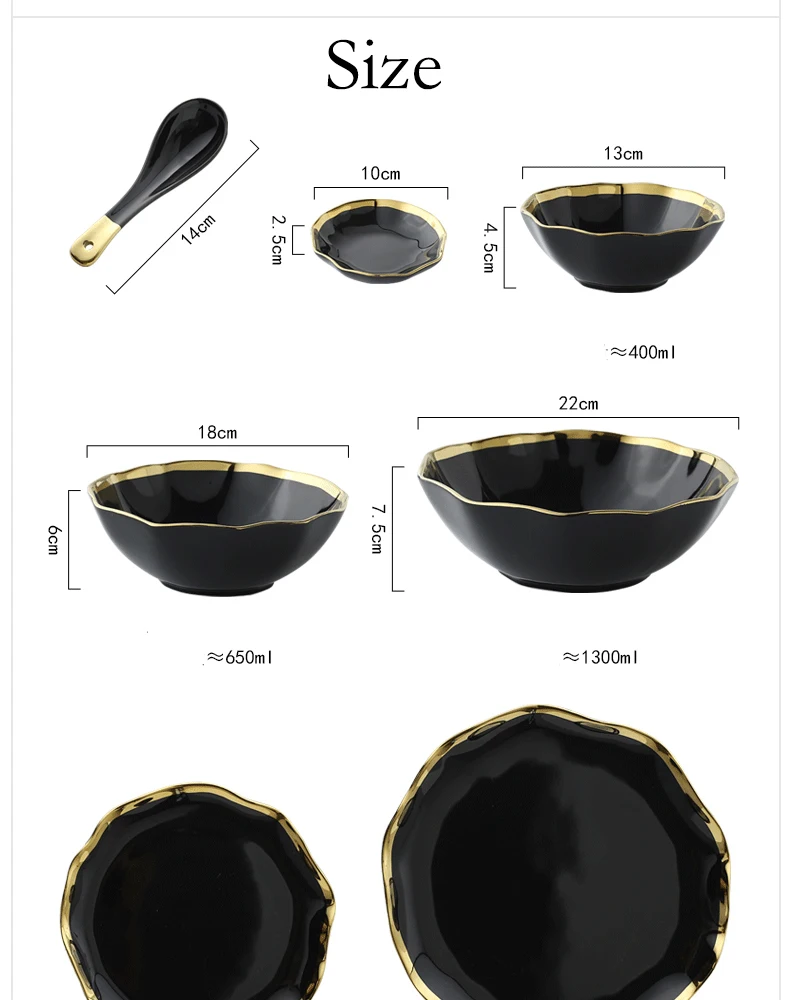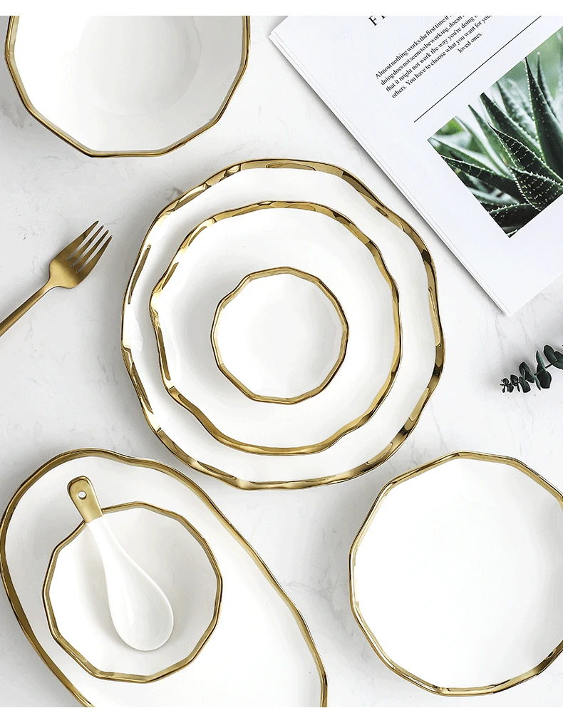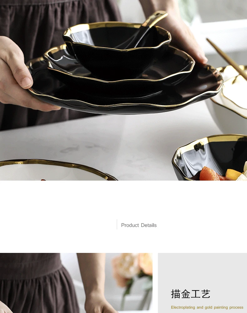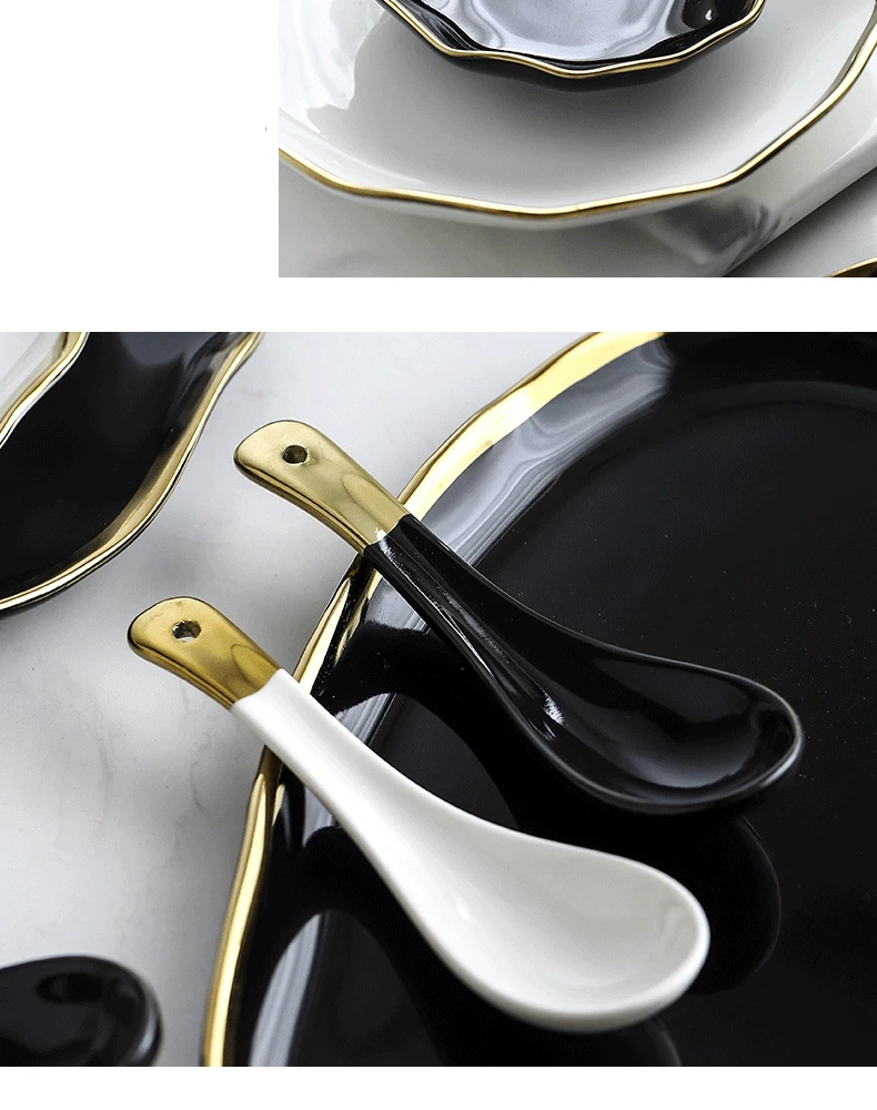 Piatto in ceramica Nordic Golden Stroke leggero di lusso nero bianco pasta bistecca piatti da pranzo piatti da dessert ciotole da zuppa stoviglie per la casa