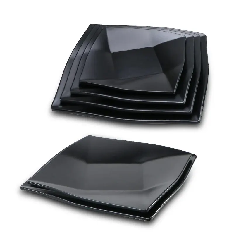 Piatto nero opaco Stoviglie in melammina Snack quadrato in plastica Cena Forniture da cucina Piatti laterali per girarrosto commerciale