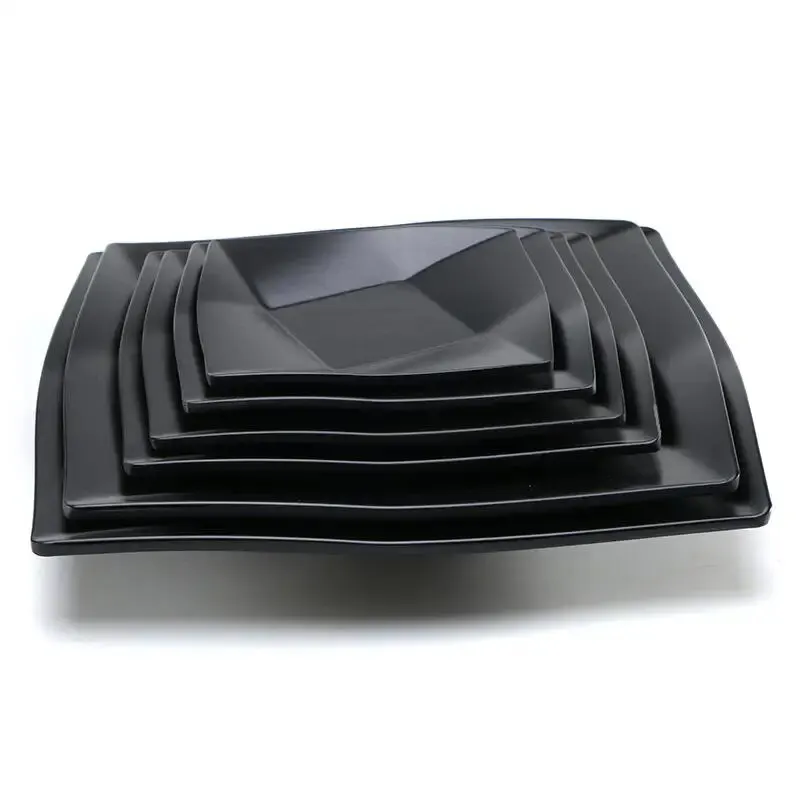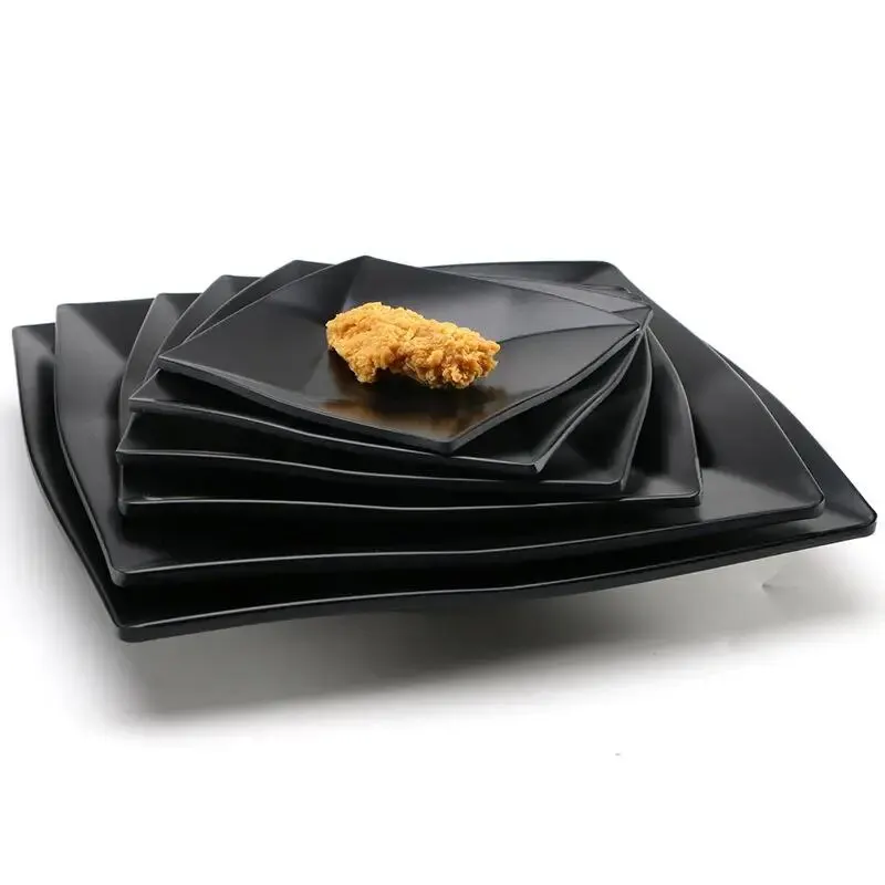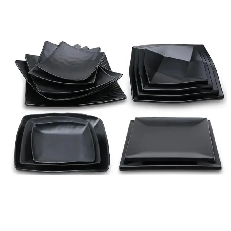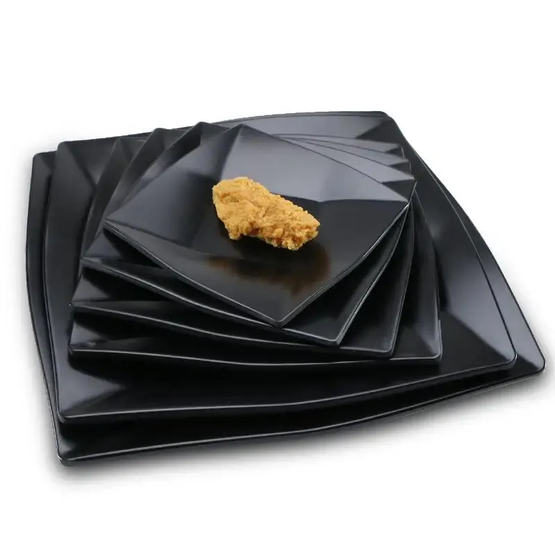 Piatto nero opaco Stoviglie in melammina Snack quadrato in plastica Cena Forniture da cucina Piatti laterali per girarrosto commerciale