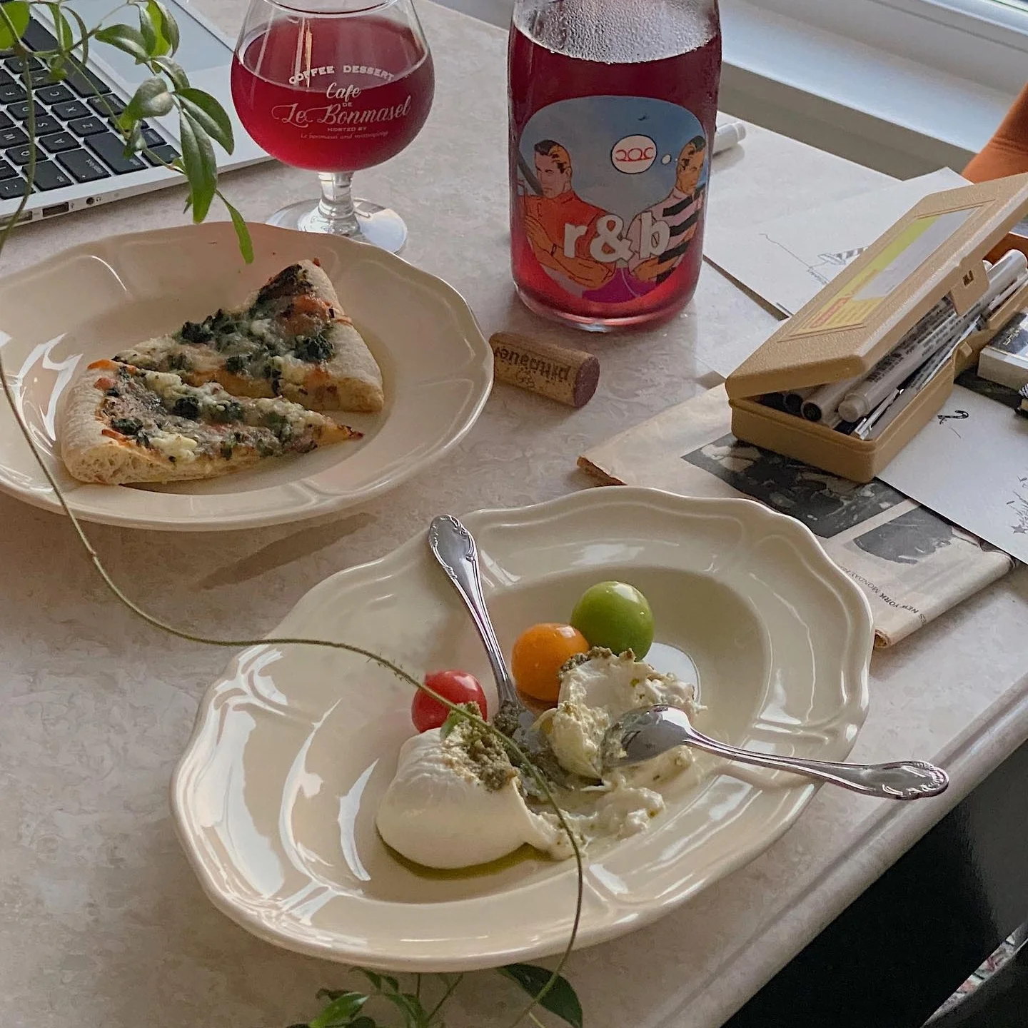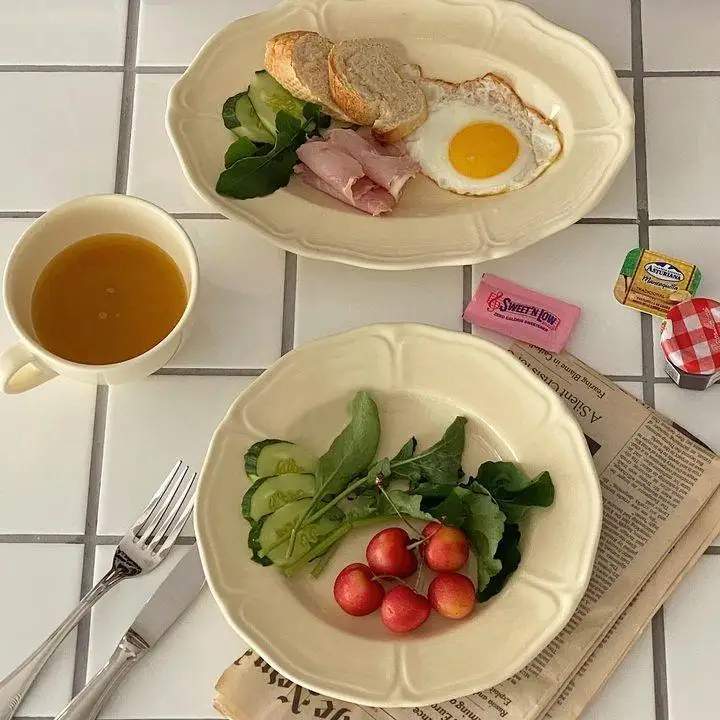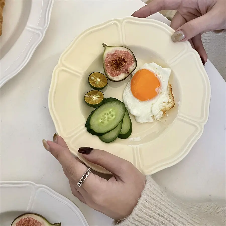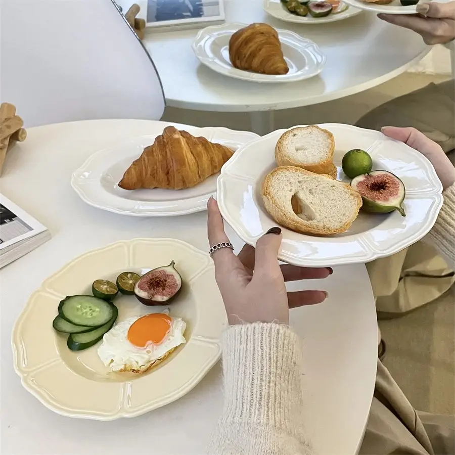 Piatto occidentale in stile francese Ins Piatto occidentale in ceramica color crema Piatto ovale da dessert retrò Piatto da colazione estetico alto