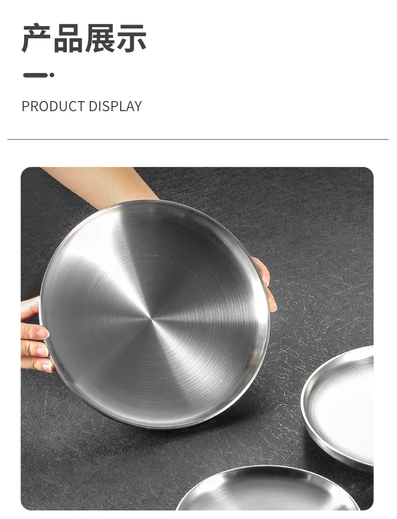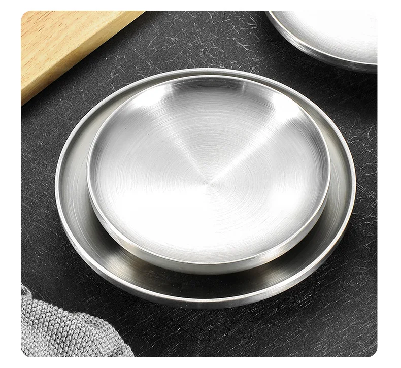 Piatto rotondo in acciaio inossidabile 304, piatto piano isolato a doppia parete, piatti per snack, piatti e frutta