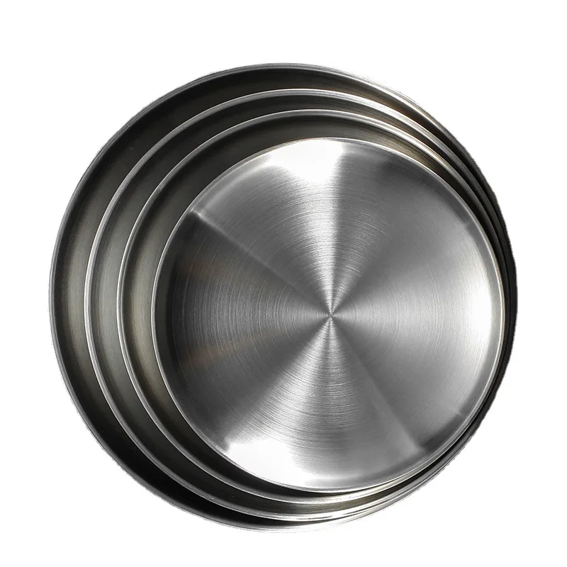Piatto rotondo in acciaio inossidabile 304, piatto piano isolato a doppia parete, piatti per snack, piatti e frutta