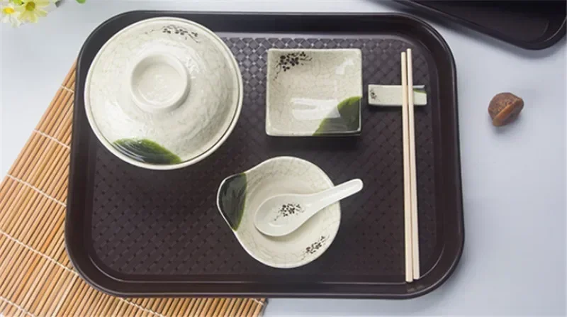 piatto snack pallet di plastica antiscivolo ristorante mensa fast food nero Vassoio da portata Piatto da dessert quadrato Set rettangolari