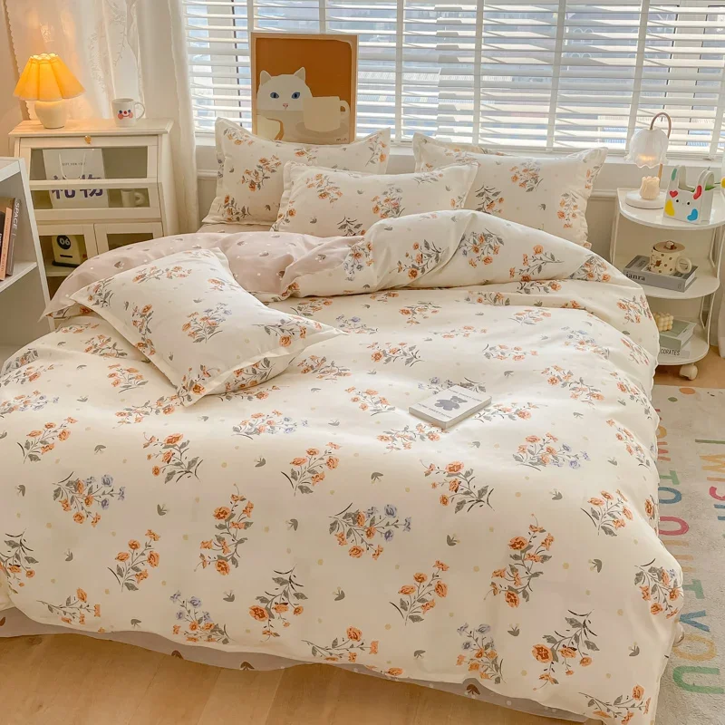 piccolo set quattro pezzi abradato in puro cotone fresco, lenzuolo delicato sulla pelle copripiumino in cotone lavato, set da tre pezzi per dormitorio