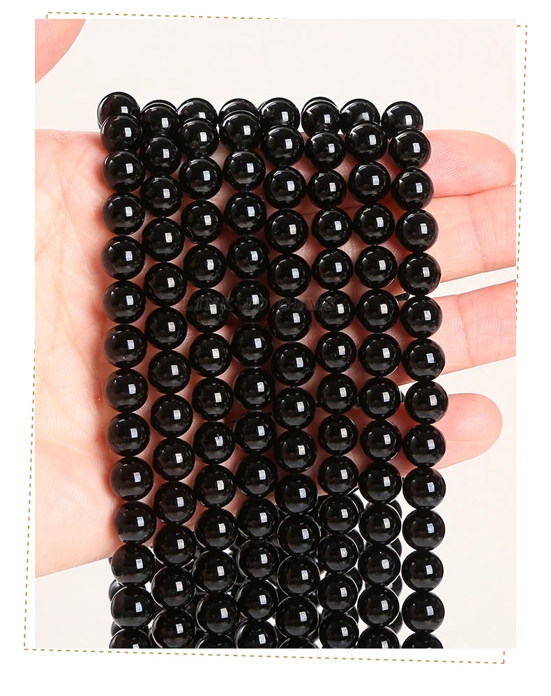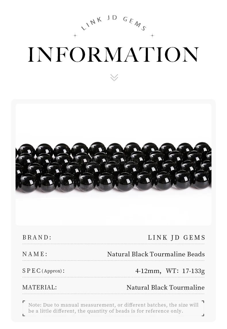 Pietra naturale perlina tormalina nera rotonda allentata distanziatore gemma 4 6 8 10 12mm per gioielli che fanno accessorio collana braccialetto fai da te