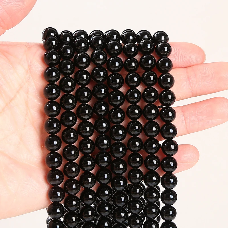 Pietra naturale perlina tormalina nera rotonda allentata distanziatore gemma 4 6 8 10 12mm per gioielli che fanno accessorio collana braccialetto fai da te