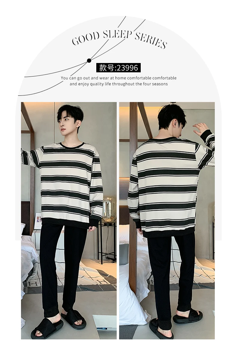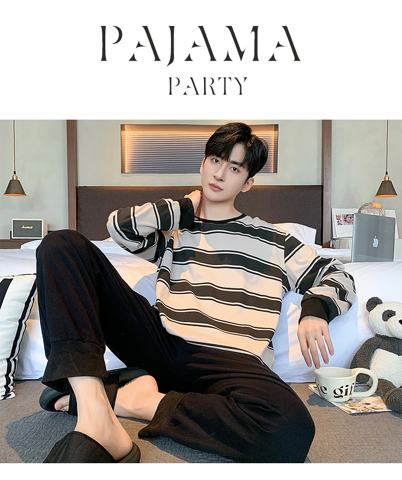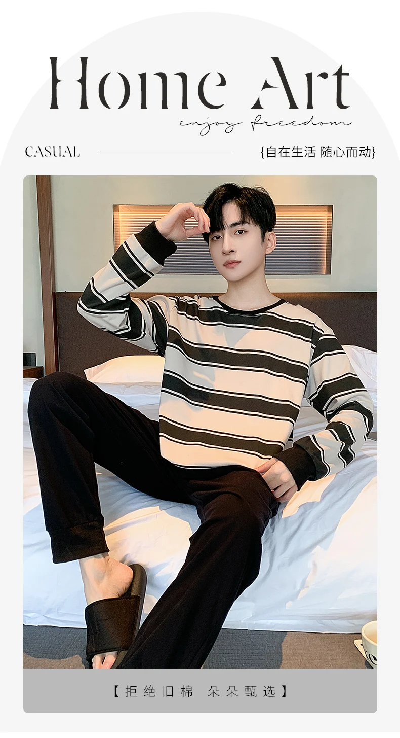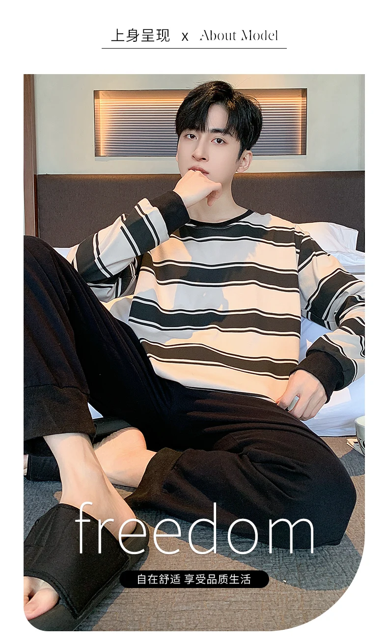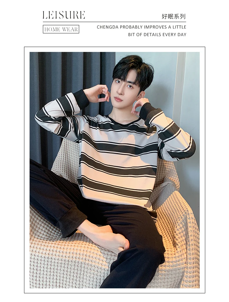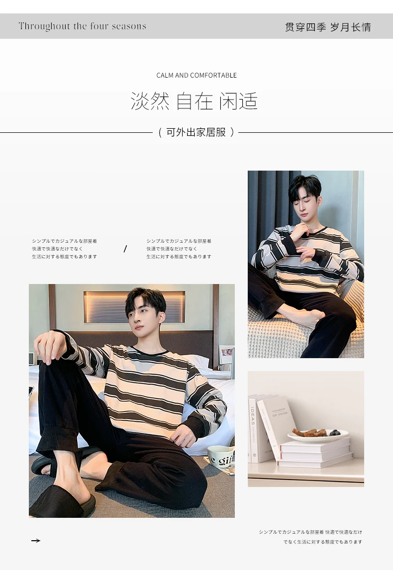 Pigiama con stampa a righe autunno inverno per uomo morbido cotone finto maniche lunghe Homewear Leisure Nightwear uomo Fashion Sleepwear