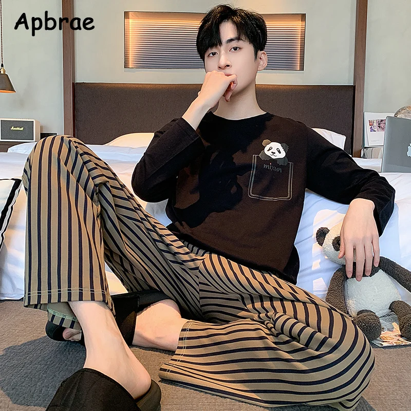 Pigiama con stampa a righe autunno inverno per uomo morbido cotone finto maniche lunghe Homewear Leisure Nightwear uomo Fashion Sleepwear