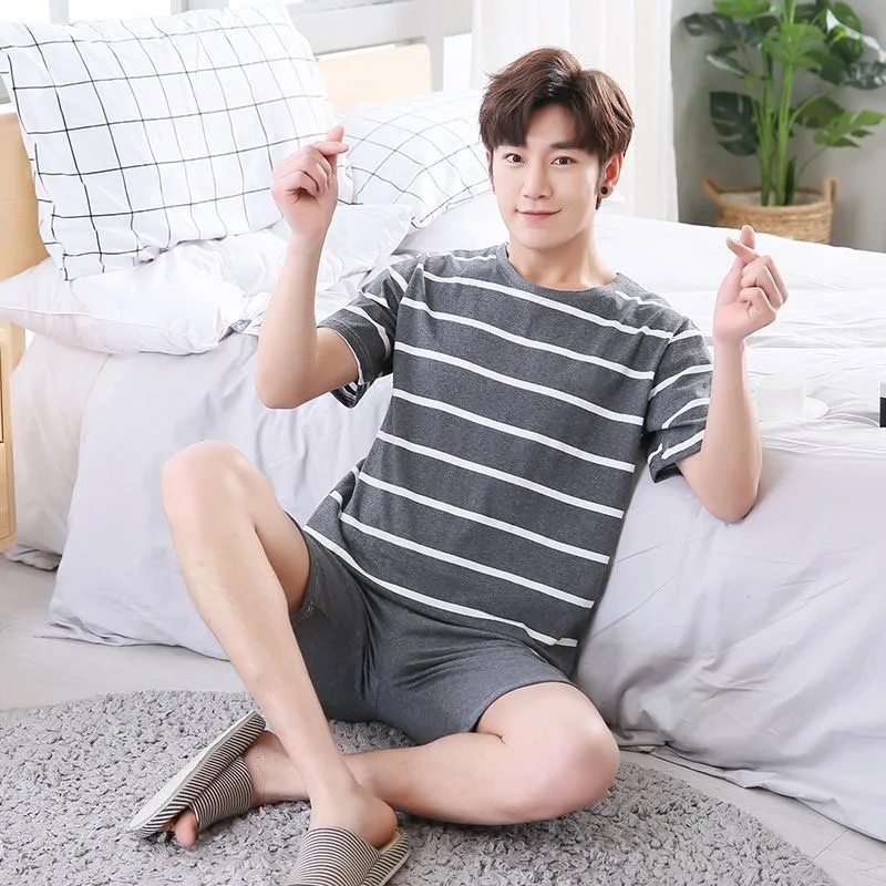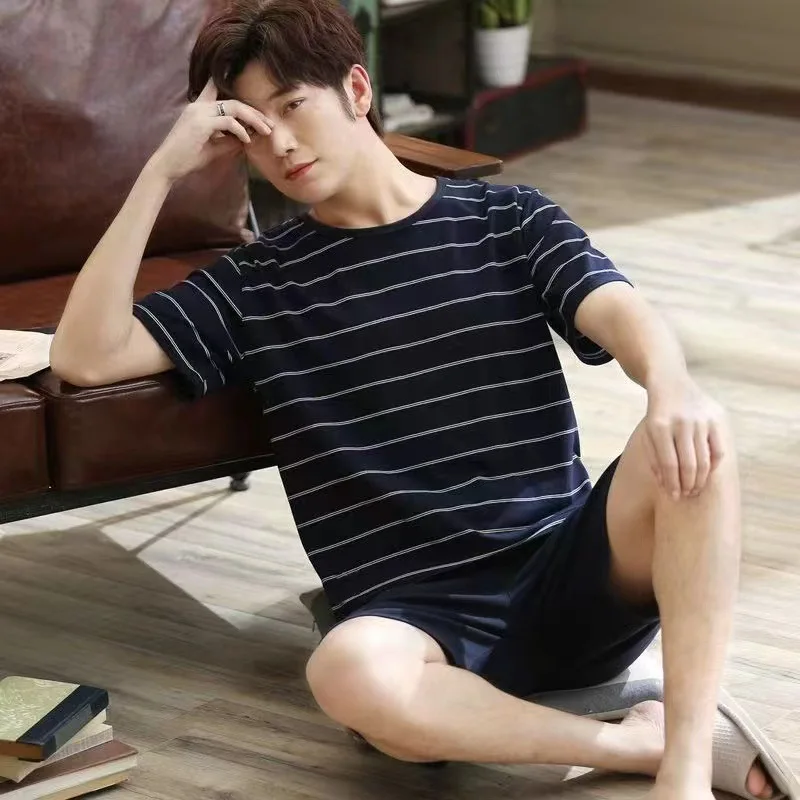 Pigiama da uomo estivo Set da casa Pantaloncini a maniche corte da uomo Studenti adolescenti Pigiama casual a righe da cartone animato Set di abbigliamento per la casa 1Pigiama da uomo estivo Set da casa Pantaloncini a maniche corte da uomo Studenti adolescenti Pigiama casual a righe da cartone animato Set di abbigliamento per la casa