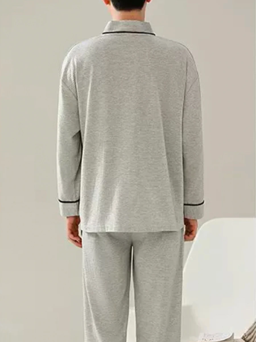 Pigiama da uomo primavera e autunno a maniche lunghe da uomo giovane semplice casual bavero autunno e inverno set da indossare per la casa 1Pigiama da uomo primavera e autunno a maniche lunghe da uomo giovane semplice casual bavero autunno e inverno set da indossare per la casa