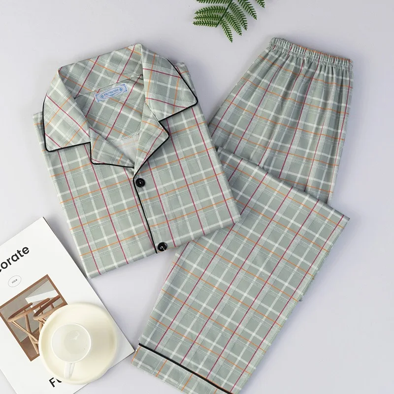 Pigiama da uomo taglie forti Autunno e inverno Plaid Indumenti da notte semplici Homewear Cardigan Top e pantaloni abbottonati Abbigliamento da notte Pigiama