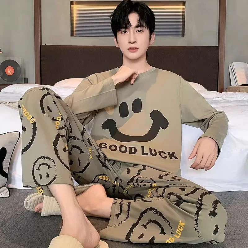 Pigiama da uomo taglie forti Set primavera ed estate Plaid tinta unita Indumenti da notte per giovani Homewear Top e pantaloni Abbigliamento da notte Pigiama