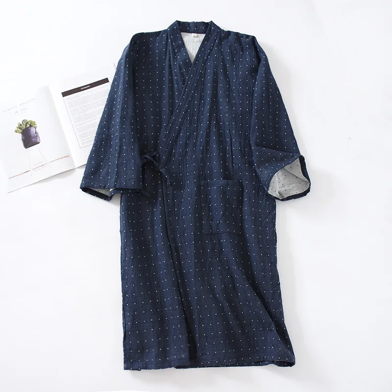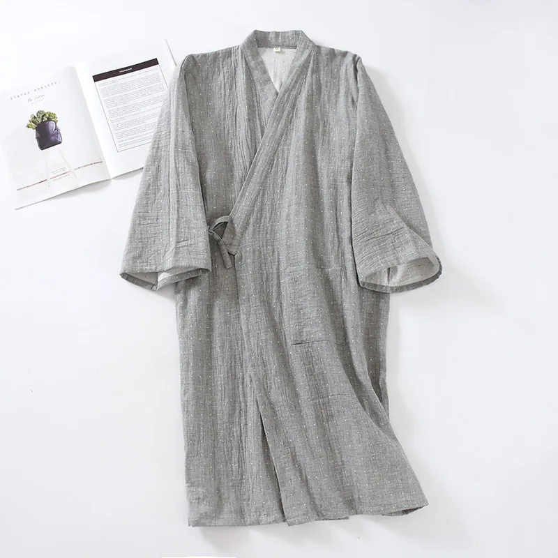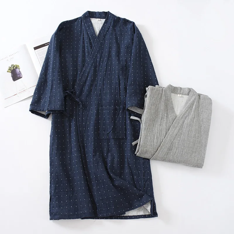 1 recensione per Pigiama Kimono da uomo in cotone stile giapponese abiti per la primavera e l’estate accappatoi sottili e oversize vestiti per la casa pigiama da uomo