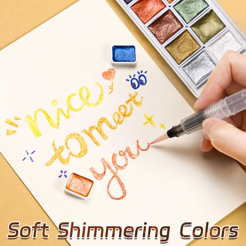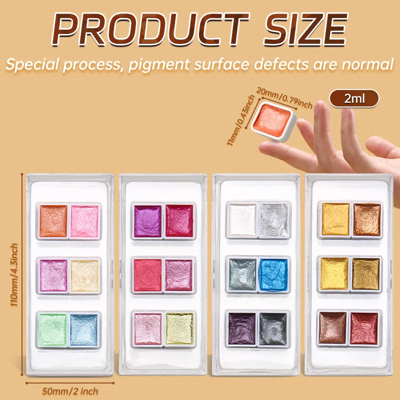 Pigmento solido glitter acquerello metallizzato a 6 colori, colori iridescenti stellati flash dorati con flash professionale per adulti, artisti