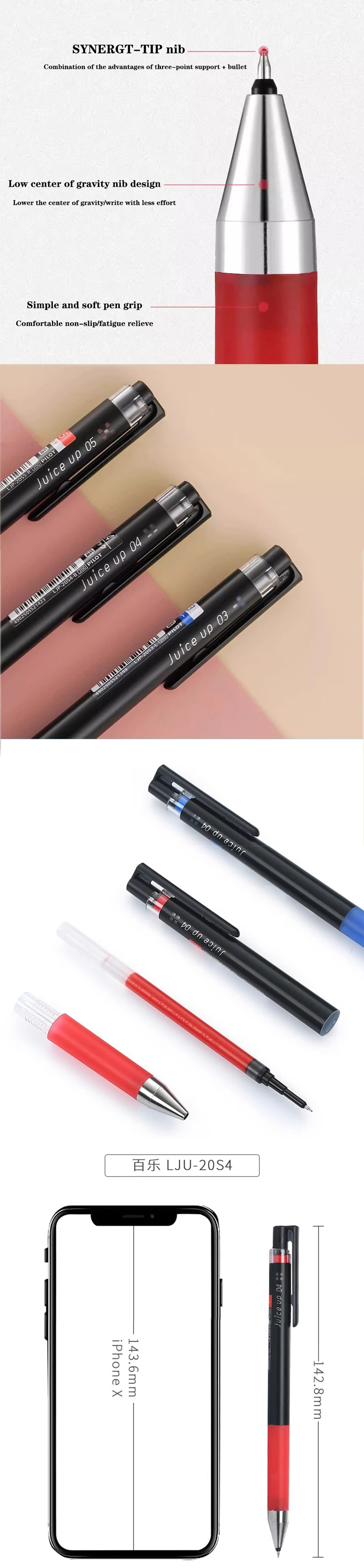 PILOT Juice Up Penna gel neutra di grande capacità Ricarica penna da 0,4 mm di alta qualità Nero Blu Rosso Forniture per ufficio scolastico