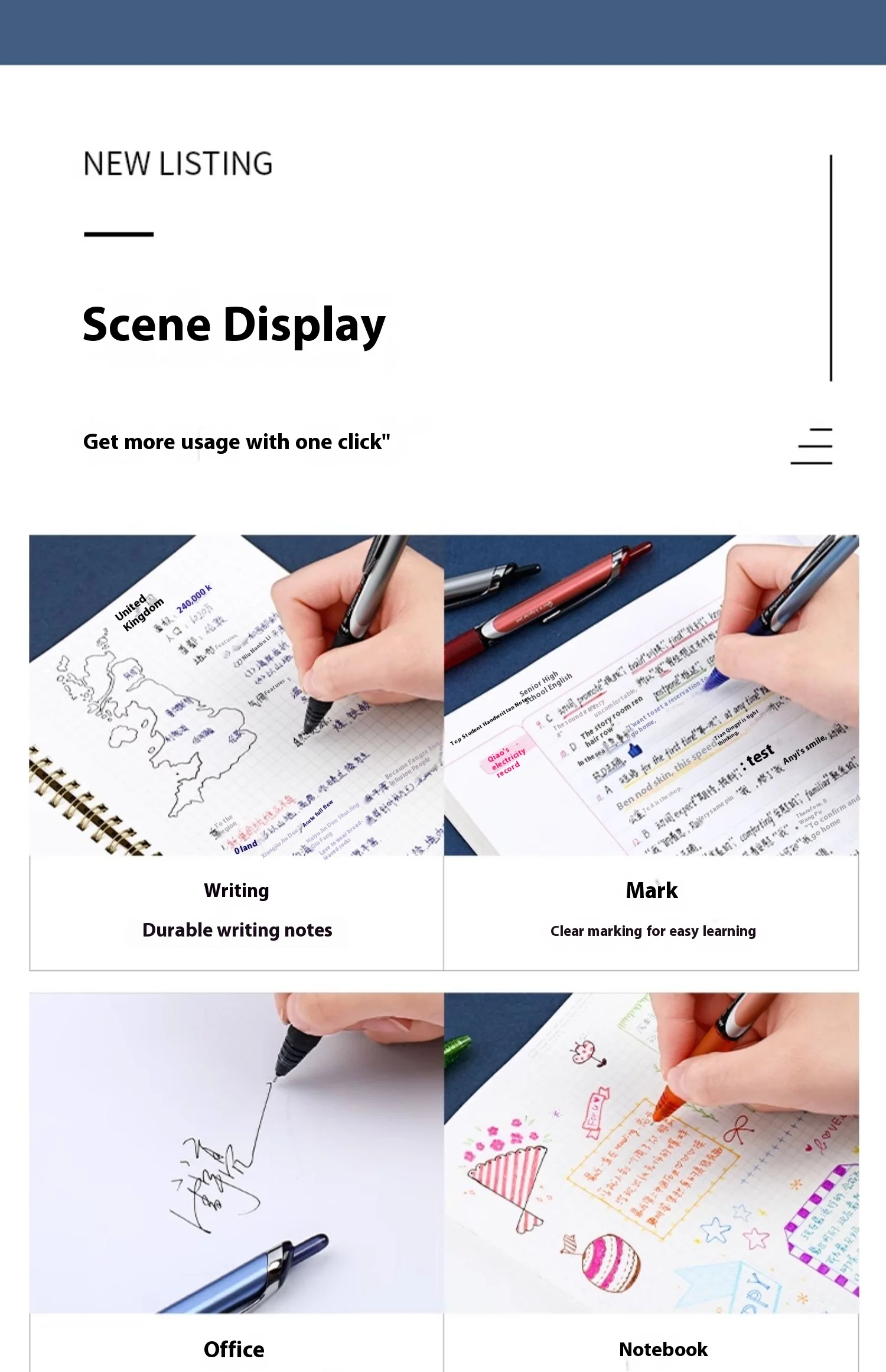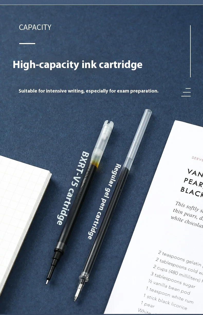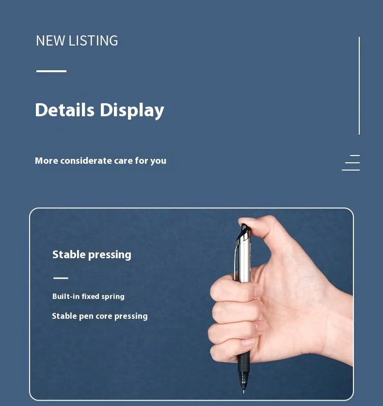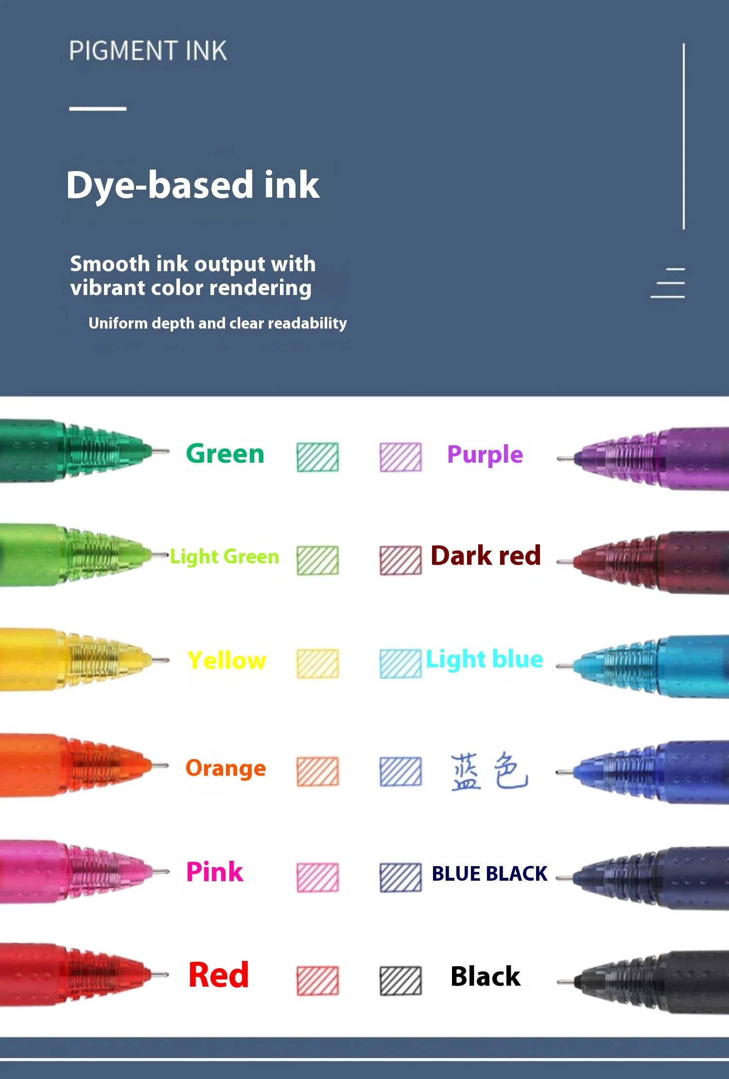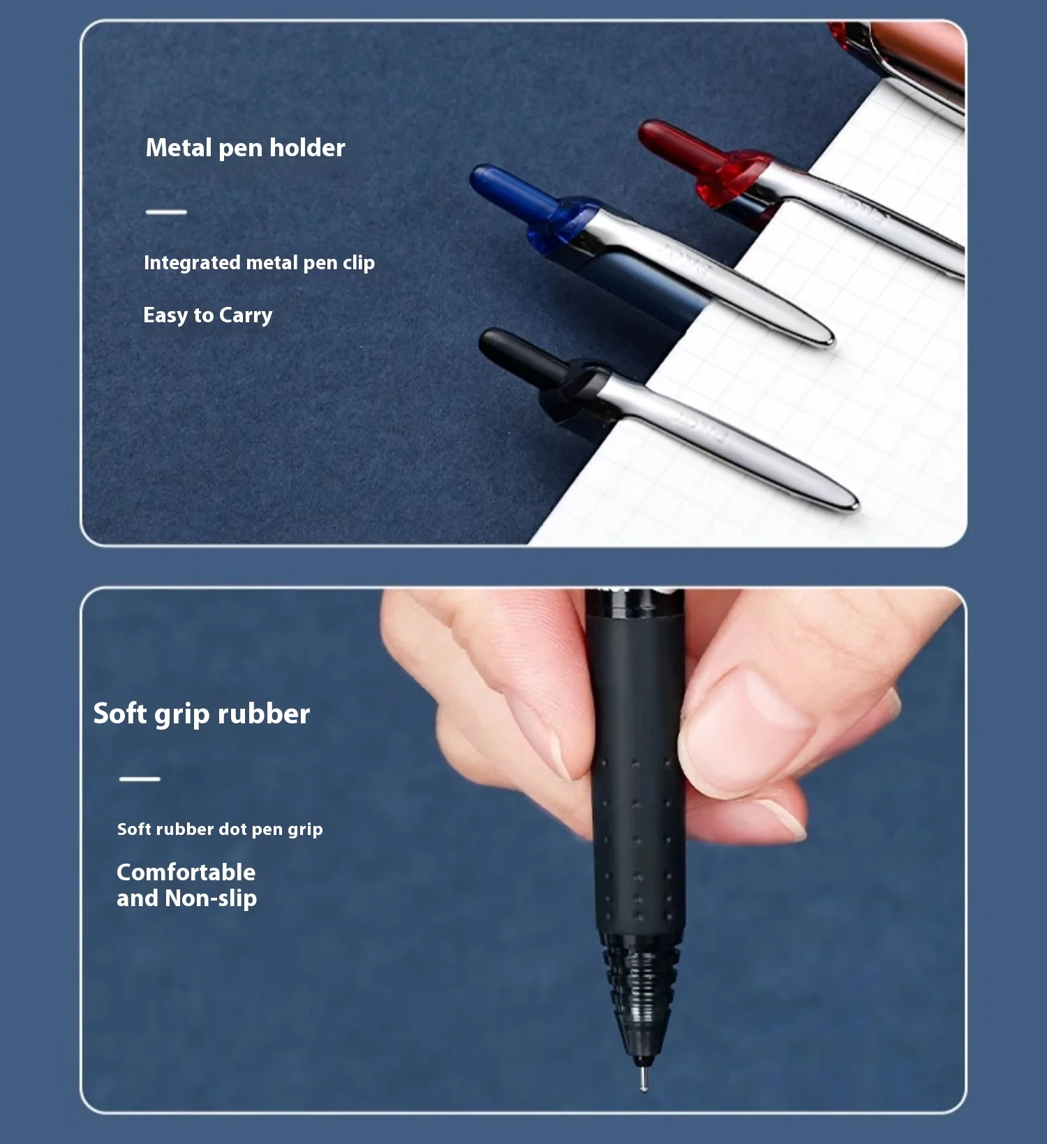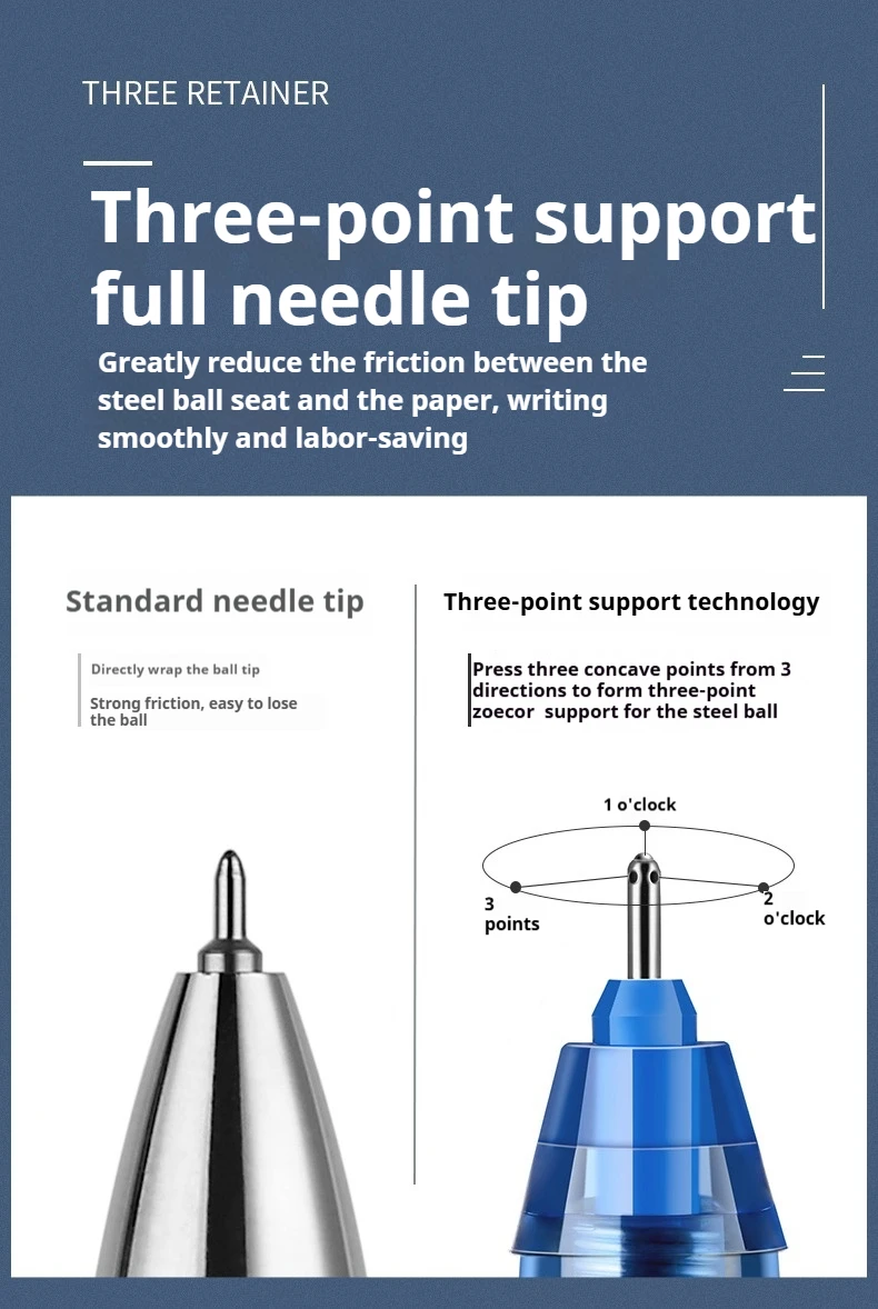 1.Pennino di supporto a tre punti:La struttura di supporto a tre punti riduce efficacemente l’attrito durante la scrittura, garantendo un flusso di inchiostro regolare e uniforme.Scrittura fluida senza attaccare, rendendo la scrittura semplice. 2.Grande capacità di inchiostro:La grande cartuccia d’inchiostro dedicata fornisce inchiostro di lunga durata, rendendolo adatto per esami e scrittura ad alta intensità. 3.Sistema di controllo intelligente dell’inchiostro:Il design a prova di perdite lo rende un compagno perfetto per i viaggiatori, anche in ambienti ad alta quota e a bassa pressione. 4.Inchiostro pigmentato di alta qualità:L’inchiostro a base d’acqua offre un flusso fluido, una scrittura chiara, resistente all’acqua e colori intensi.Disponibile in una varietà di colori. 5.Design intuitivo:Impugnatura antiscivolo in gomma morbida, clip in metallo per la portabilità e meccanismo di clic stabile.
