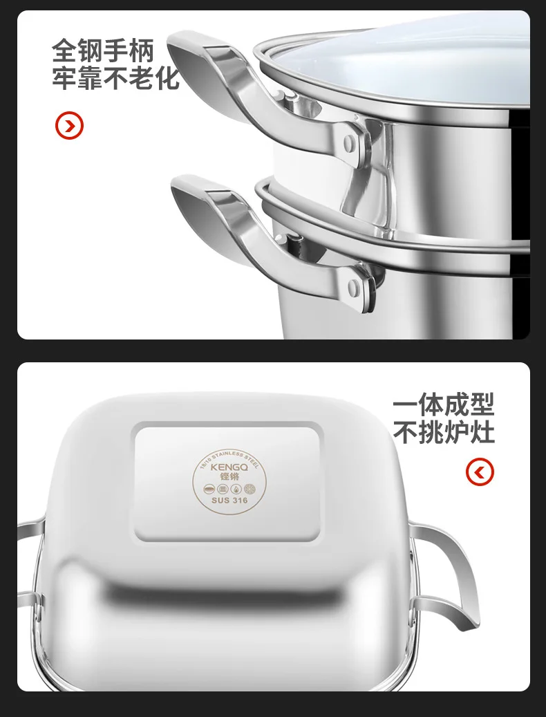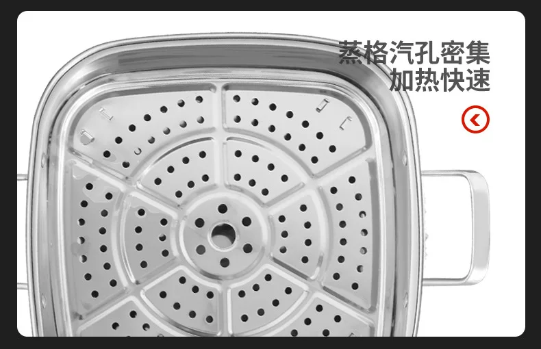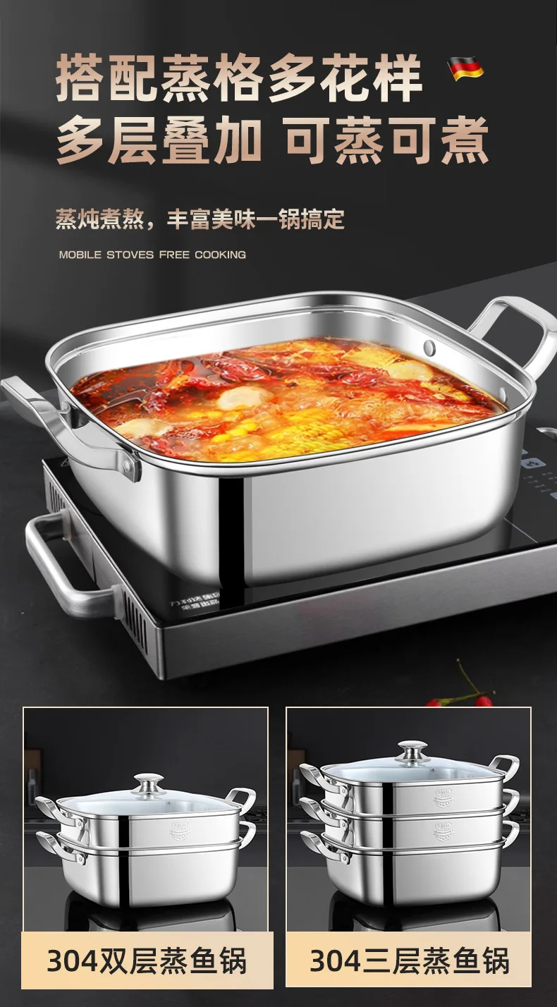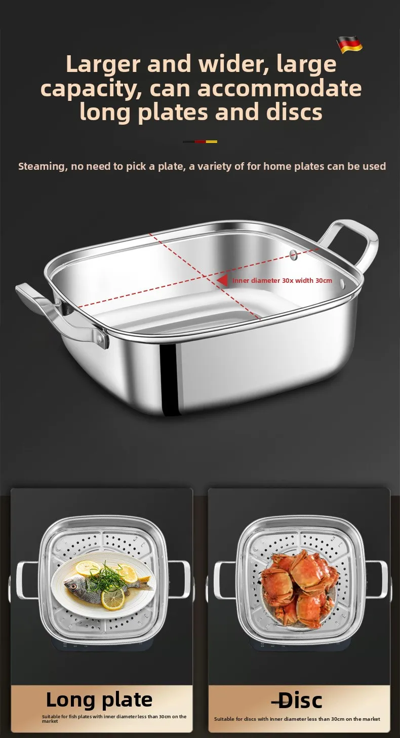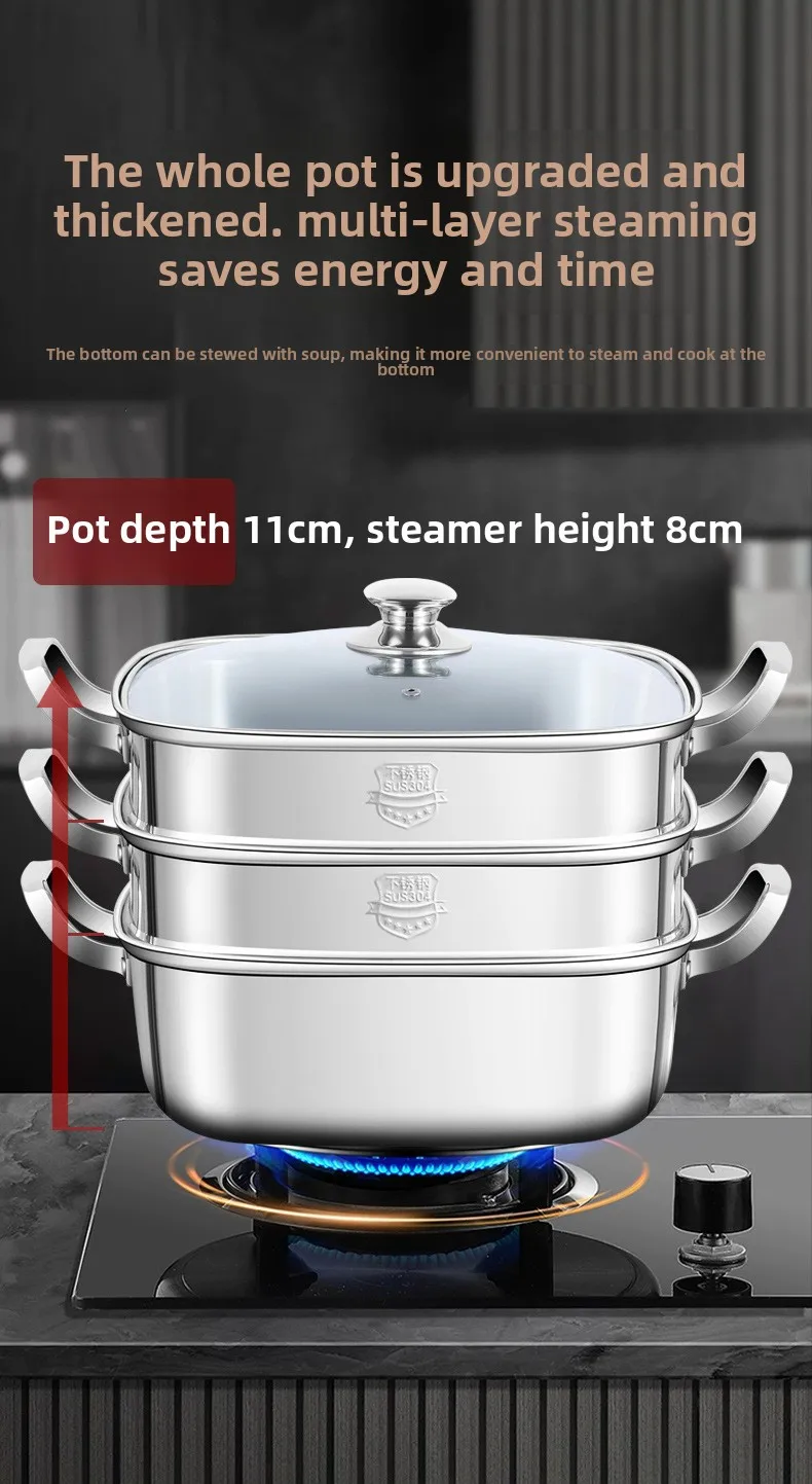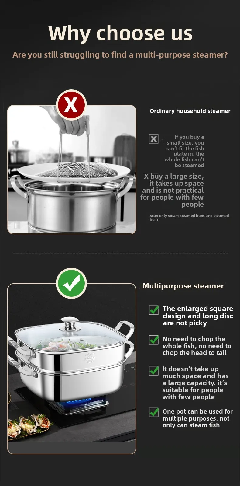 Piroscafo quadrato, uso domestico, cestello per cottura a vapore spesso in acciaio inossidabile 316, fornello a induzione a gas multifunzionale, universale