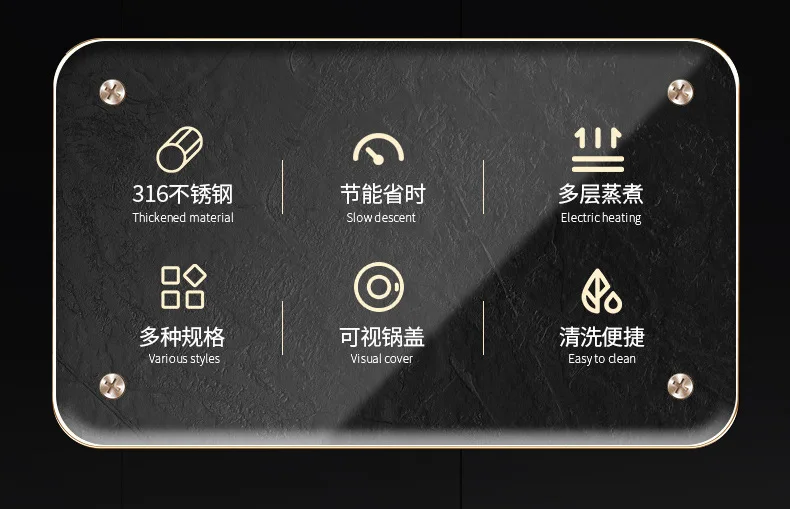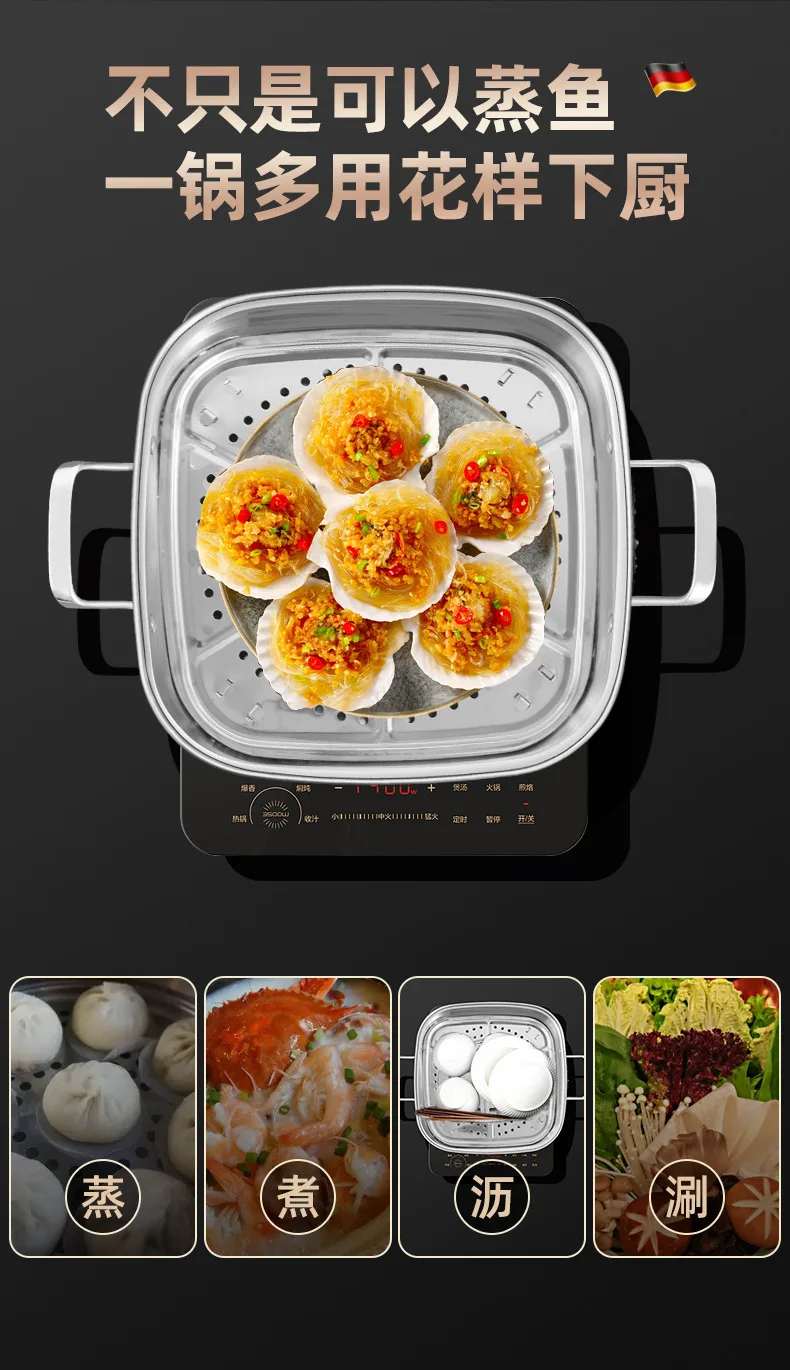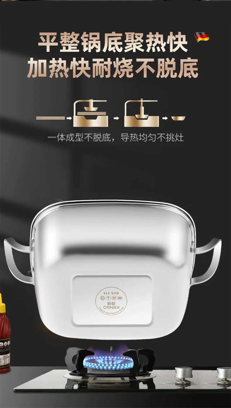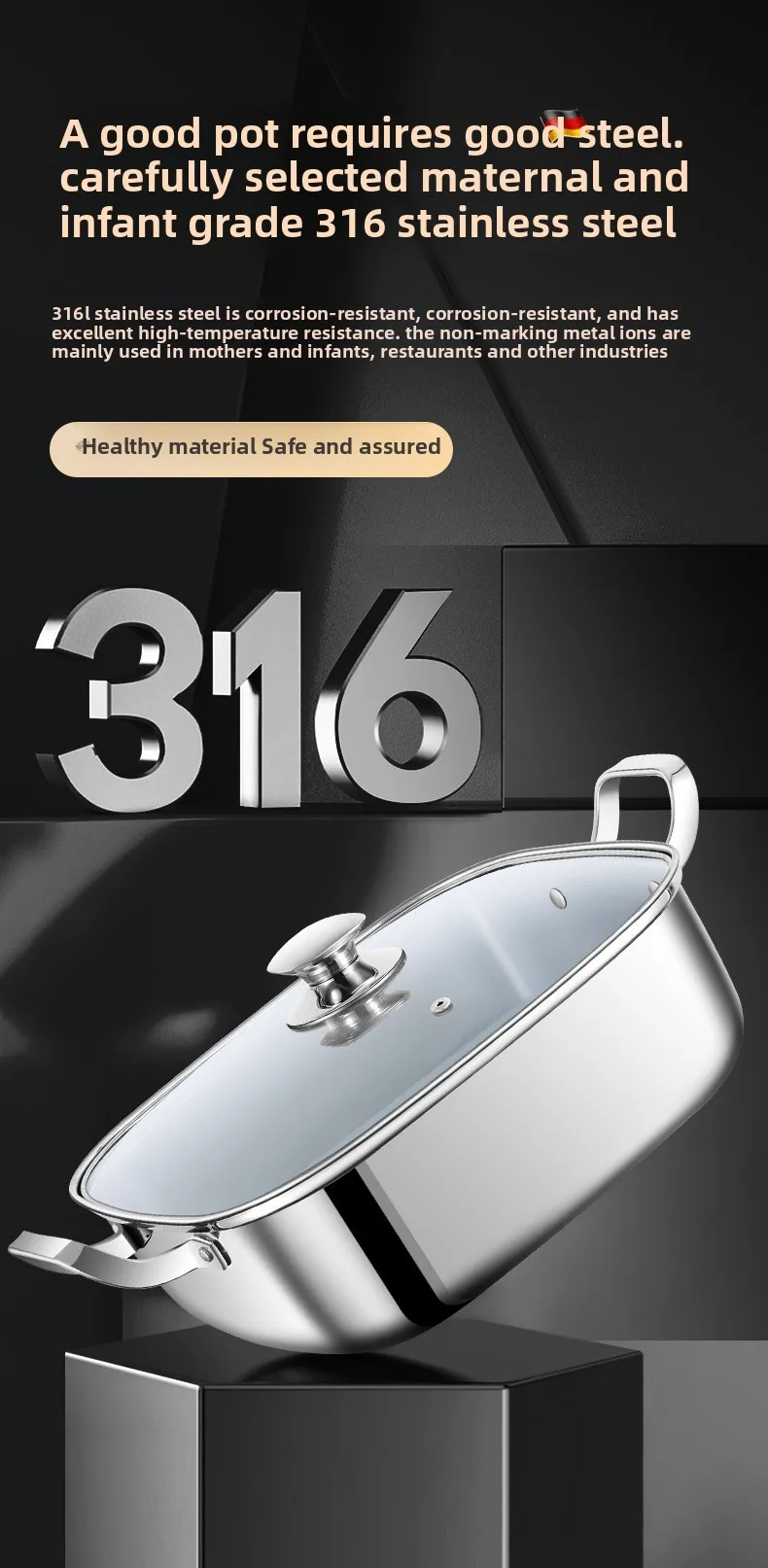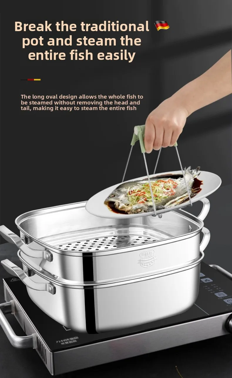 Piroscafo quadrato, uso domestico, cestello per cottura a vapore spesso in acciaio inossidabile 316, fornello a induzione a gas multifunzionale, universale