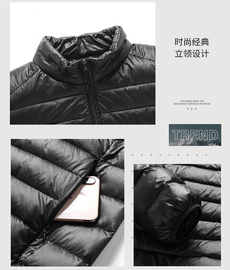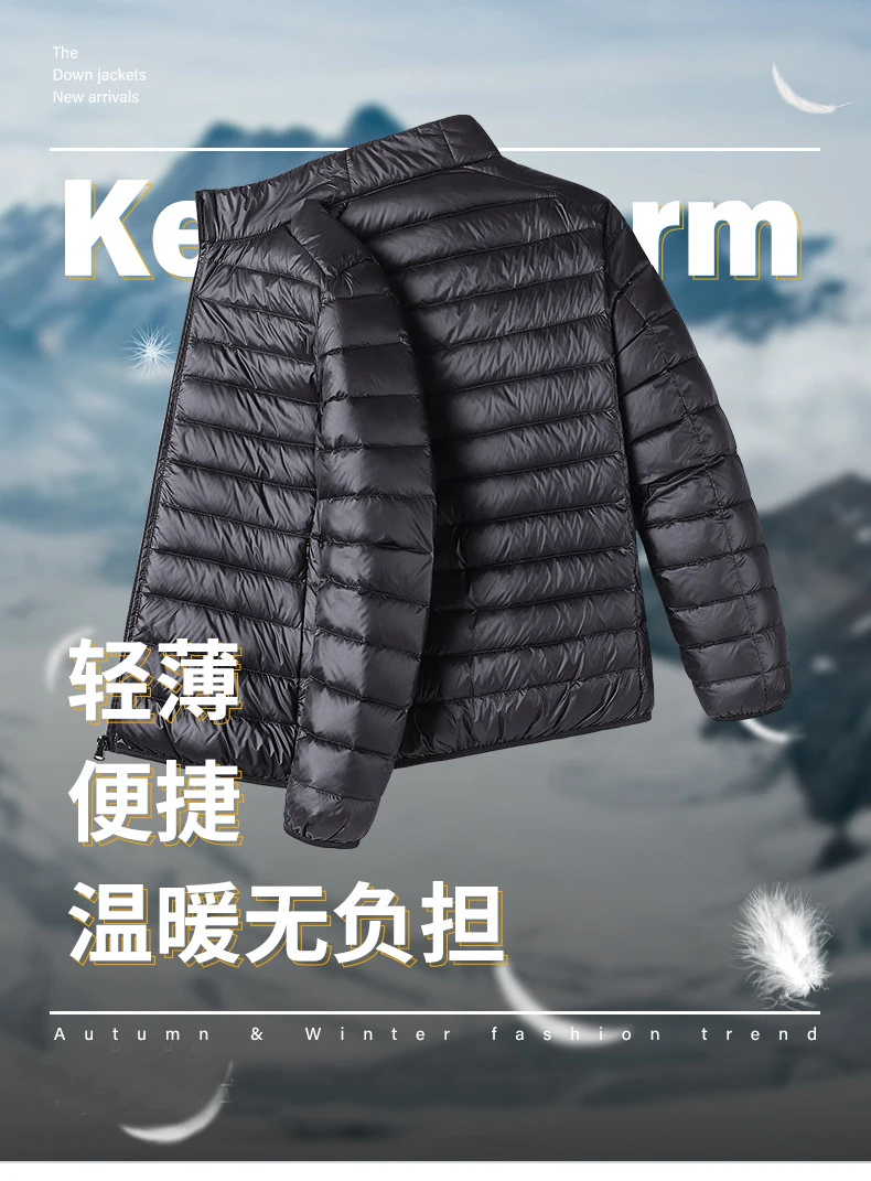 Piumini invernali da uomo 70% piumini d'anatra bianchi portatili ultraleggeri e sottili con colletto alla coreana da uomo Capispalla Piumino DJ02 1Piumini invernali da uomo 70% piumini d’anatra bianchi portatili ultraleggeri e sottili con colletto alla coreana da uomo Capispalla Piumino DJ02