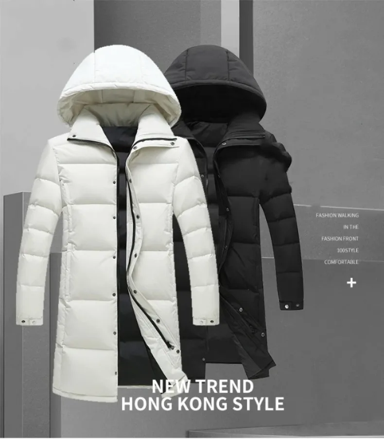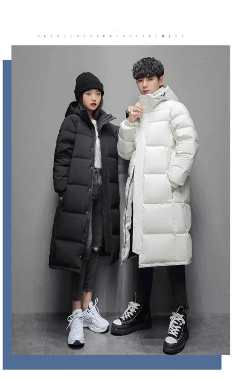 Piumino da uomo nuovissimo Piumino invernale alla moda Cappotto lungo invernale da donna con cappuccio in stile coreano sottile con cappuccio
