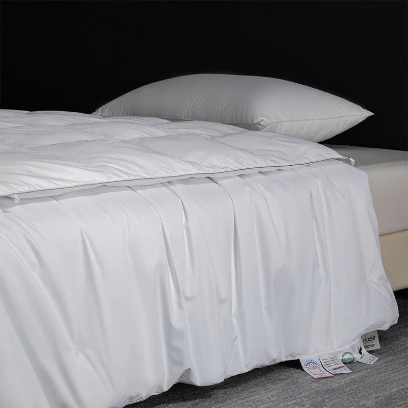 Consiste a due trapunta: uno è una vera trapunta di piume d’oca bianche al 95% di fascia alta e l’altro è una trapunta di pura seta di gelso artigianale.Questo è equivalente all’acquisto di due trapunte per il prezzo di uno.