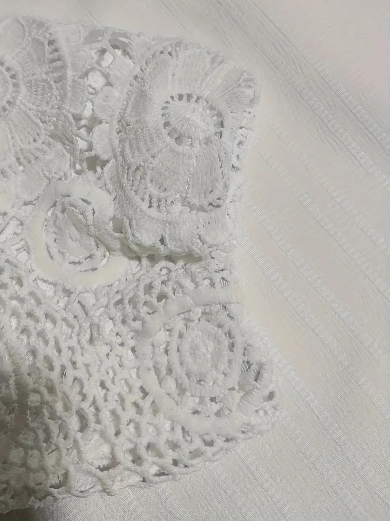 5 recensioni per Plus Size 1XL-5XL Camicia da donna in pizzo guipure a maniche lunghe a contrasto moda donna Camicetta ampia con maniche a lanterna casual