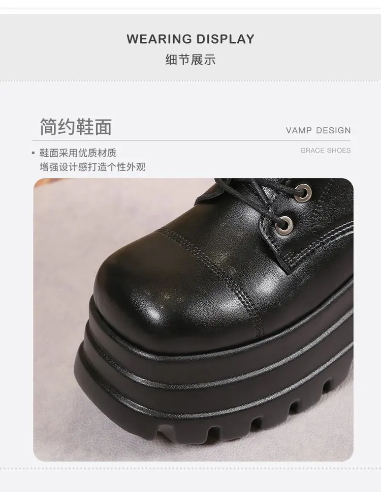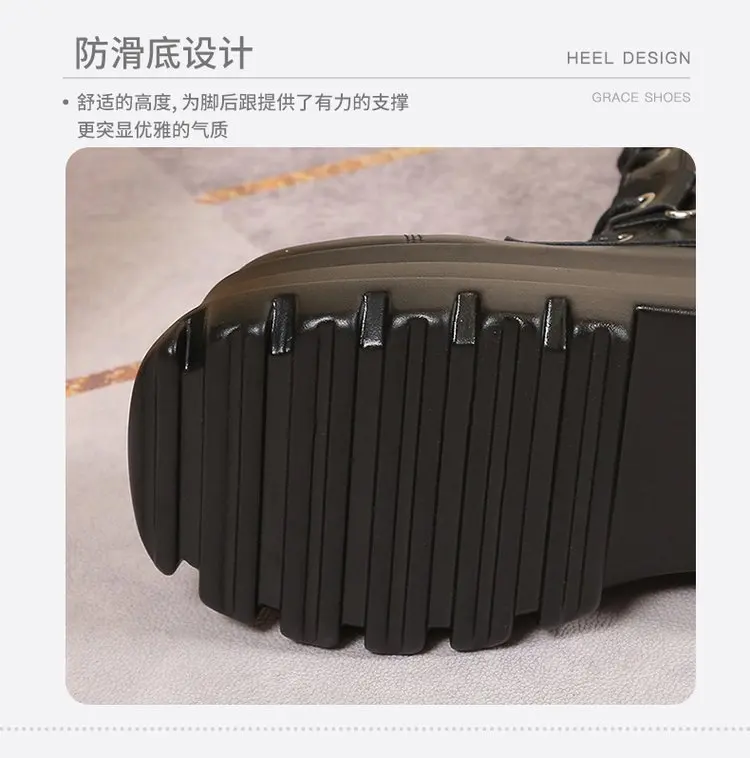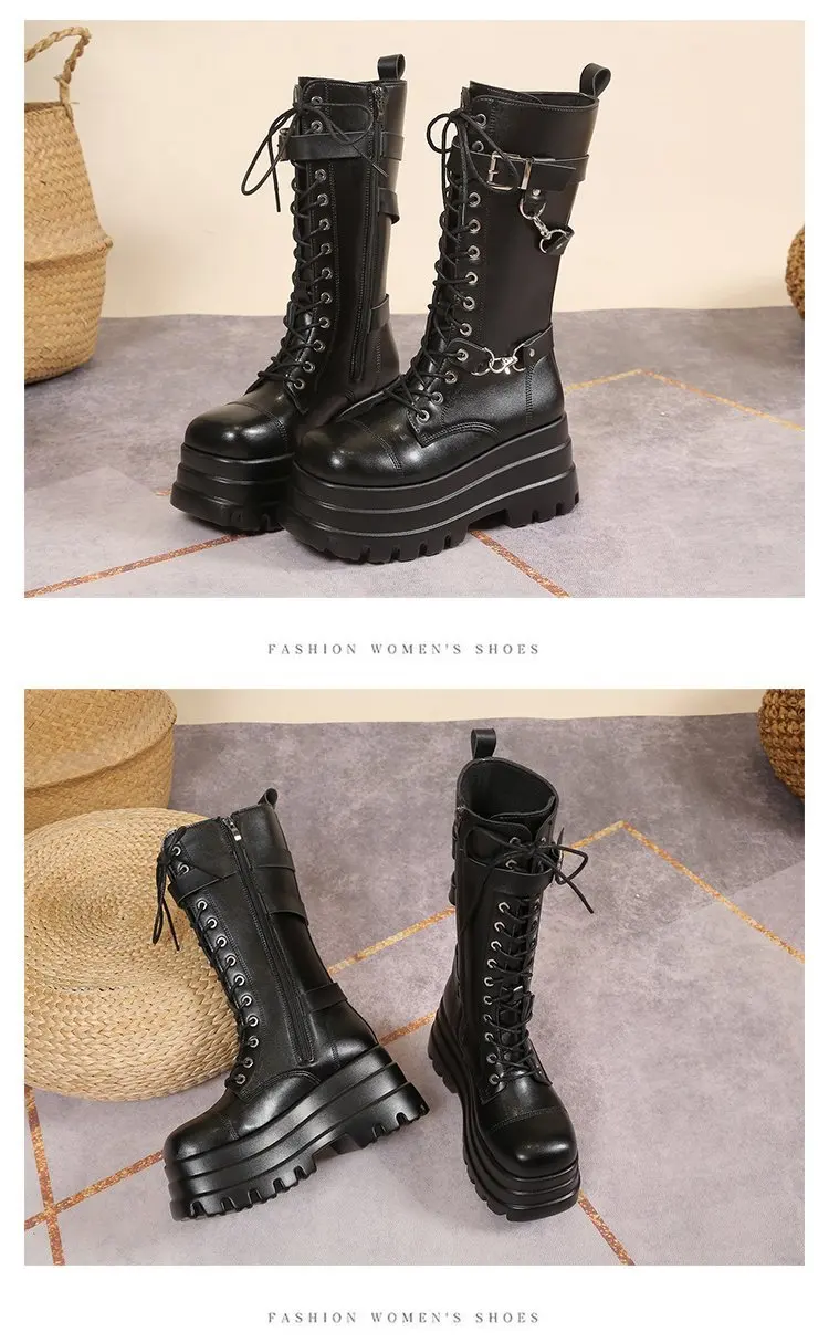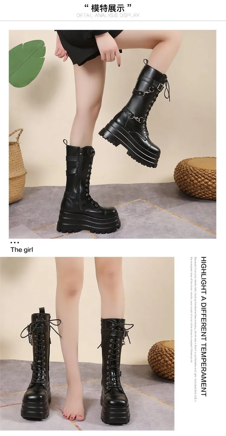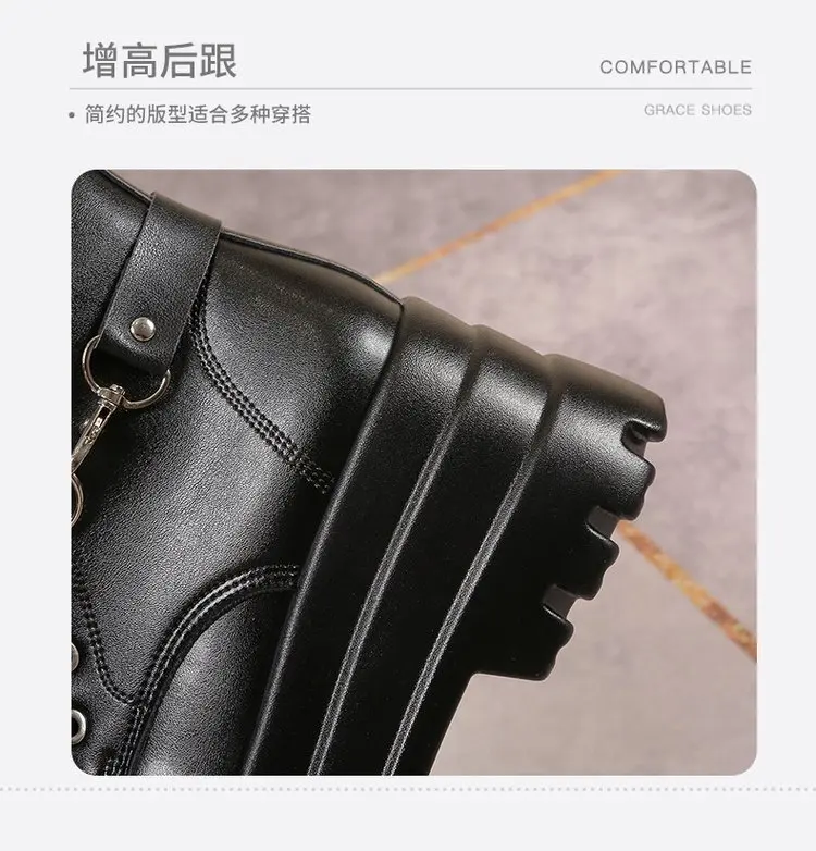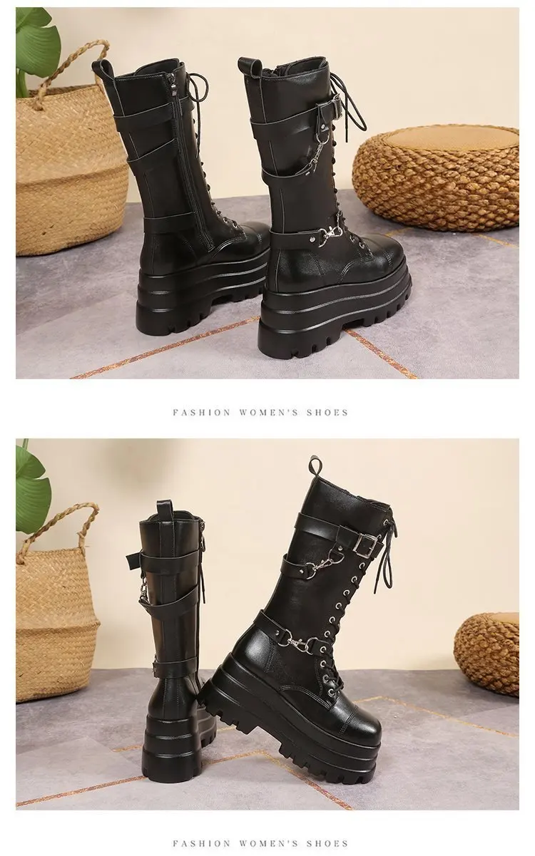 Plus Size 43 Autunno Donna Stivali Fibbia Punta tonda Zeppe Stivali con plateau Punk Goth INS Scarpe da strada da donna Stivali da combattimento per le donne
