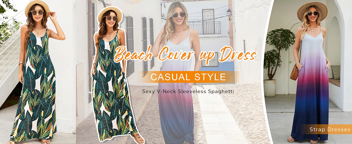 T-shirt casual estiva da donna, abiti da spiaggia, copricostume con tasche, abito t-shirt ampio taglie forti